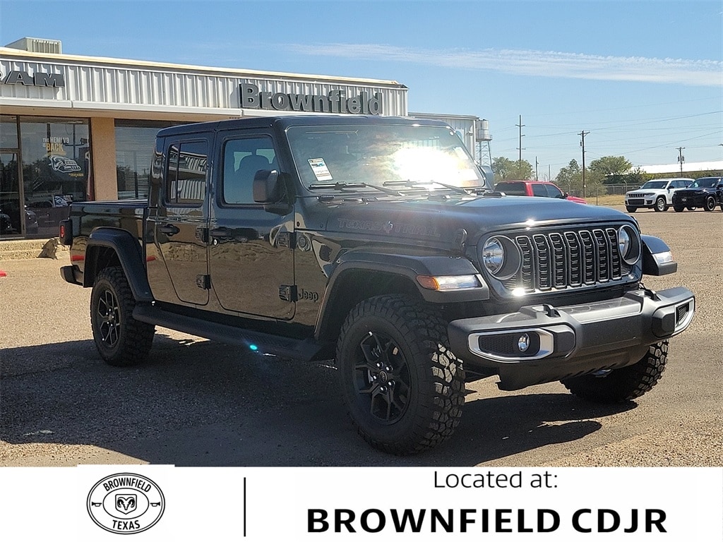 This 2025 Jeep Gladiator Texas Trail in Black Clearcoat comes with the following features: 3.6L V6 24V VVT 8-Speed Automatic 4WD Convenience Group (Corning Gorilla Glass, Daytime Running Lamp System, Emergency/Assistance Call, Front Door Locks 2-Door Passive Entry, Heated Front Seats, Heated Steering Wheel, Remote Start System, and Universal Garage Door Opener), Quick Order Package 24J Texas Trail (97 MPH Vehicle Max Speed Calibration, Advanced Brake Assist, Automatic Headlamps, Body Color 3-Piece Hard Top, Body Color Fender Flares (2-Piece), Deep Tint Sunscreen Windows, Freedom Panel Storage Bag, Full Length Floor Console Premium Armrest, Full Speed Forward Collision Warning Plus, Hard Seat Back, Integrated Radar Camera Module (IRCM), Leather Wrapped Park Brake Handle, Leather Wrapped Shift Knob, Power 4-Way Driver Lumbar Adjust, Power 4-Way Passenger Lumbar Adjust, Power Adjust 8-Way Driver Seat, Power Adjust 8-Way Front Passenger Seat, Power Heated Mirrors, Premium Door Trim Panel, Premium McKinley Trimmed Seats, Premium Wrapped Steering Wheel, Rear Armrest w/Cupholder Seat, Rear Sliding Window, Rear Window Defroster, Security Alarm, Sun Visors w/Illuminated Vanity Mirrors, Texas Trail, Texas Trail Tailgate & Hood Decals, Wheels: 17" x 7.5" Painted Black, and Willys Suspension), 110 MPH Vehicle Max Speed Calibration, 12.3" Touchscreen Display, 3.73 Rear Axle Ratio, 4-Wheel Disc Brakes, 4G LTE Wi-Fi Hot Spot, 8 Speakers, ABS brakes, Air Conditioning, Alexa Built-In, AM/FM radio: SiriusXM, Apple CarPlay, Apple CarPlay/Android Auto, Brake assist, Cloth Low-Back Bucket Seats, Compass, Connectivity - US/Canada, Delay-off headlights, Driver door bin, Driver vanity mirror, Dual front impact airbags, Dual front side impact airbags, Electronic Stability Control, Front anti-roll bar, Front Bucket Seats, Front Center Armrest w/Storage, Front fog lights, Front License Plate Bracket, Front reading lights, Google Android Auto, Illuminated entry, Integrated roll-over protection, Low tire pressure warning, MOPAR All-Weather Slush Mats, Normal Duty Suspension, Occupant sensing airbag, Outside temperature display, Overhead airbag, Panic alarm, ParkView Rear Back-Up Camera, Passenger door bin, Passenger vanity mirror, Power steering, Power windows, Radio data system, Radio: Uconnect 5 w/12.3" Display, Rear anti-roll bar, Rear reading lights, Remote keyless entry, Side Steps, Speed control, Split folding rear seat, Steering wheel mounted audio controls, Tachometer, Telescoping steering wheel, Tilt steering wheel, Traction control, Trip computer, USB Host Flip, Variably intermittent wipers, Voltmeter, and Wheels: 17" x 7.5" Black Steel Styled.