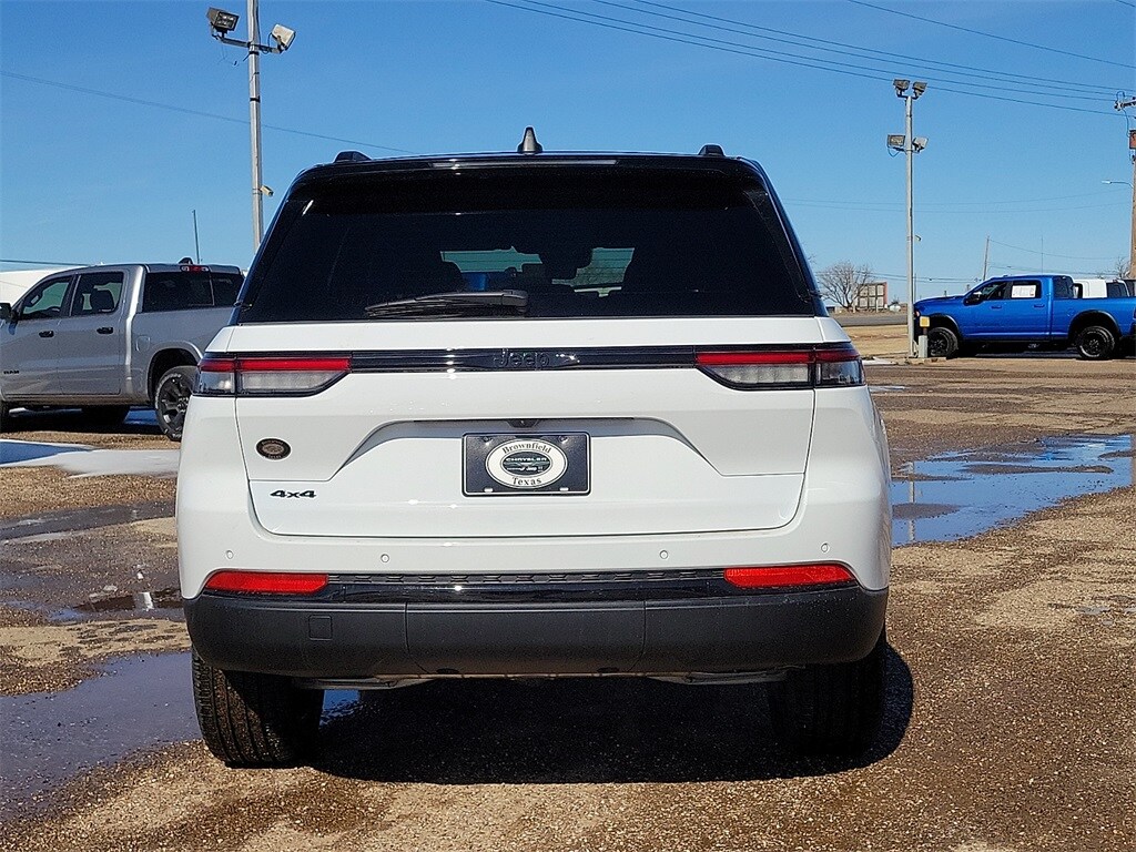 This 2025 Jeep Grand Cherokee Limited in Bright White Clearcoat comes with the following features: 3.6L V6 24V VVT 8-Speed Automatic 4WD 4WD Blackout Model (Black Painted Roof, Delete Limited Badge, Dual-Pane Panoramic Sunroof, Gloss Black Exterior Accents, and Wheels: 20" x 8.5" Black Painted Aluminum), Quick Order Package 22E, 4WD, 4-Wheel Disc Brakes, 6 Speakers, ABS brakes, Active Noise Control System, Air Conditioning, Alloy wheels, AM/FM radio: SiriusXM with 360L, Anti-whiplash front head restraints, Audio memory, Auto High-beam Headlights, Automatic temperature control, Brake assist, Bumpers: body-color, Capri Leatherette Seats, Compass, Delay-off headlights, Driver door bin, Driver vanity mirror, Dual front impact airbags, Dual front side impact airbags, Electronic Stability Control, Emergency communication system, Four wheel independent suspension, Front anti-roll bar, Front Bucket Seats, Front Center Armrest w/Storage, Front dual zone A/C, Front fog lights, Front License Plate Bracket, Front reading lights, Fully automatic headlights, Garage door transmitter, Heated door mirrors, Heated front seats, Heated rear seats, Heated steering wheel, Illuminated entry, Knee airbag, Low tire pressure warning, Memory seat, Model Year Tracking, Navigation System, Normal Duty Suspension, Occupant sensing airbag, Outside temperature display, Overhead airbag, Overhead console, Panic alarm, ParkView Rear Back-Up Camera, Passenger door bin, Passenger vanity mirror, Power door mirrors, Power driver seat, Power Liftgate, Power passenger seat, Power steering, Power windows, Radio data system, Radio: Uconnect 5 Nav with 10.1" Display, Rear anti-roll bar, Rear reading lights, Rear window defroster, Rear window wiper, Remote keyless entry, Security system, Speed control, Speed-Sensitive Wipers, Split folding rear seat, Spoiler, Steering wheel mounted audio controls, Tachometer, Telescoping steering wheel, Tilt steering wheel, Traction control, Trip computer, Turn signal indicator mirrors, Variably intermittent wipers, Voltmeter, and Wheels: 18" x 8" Polished/Painted Aluminum.