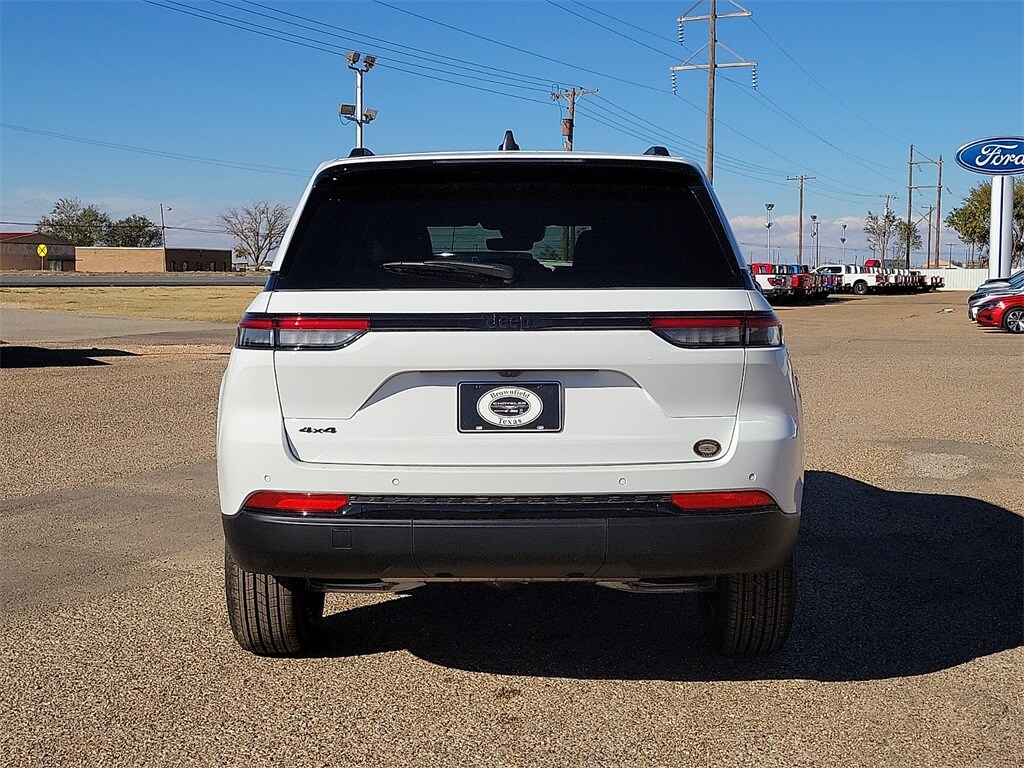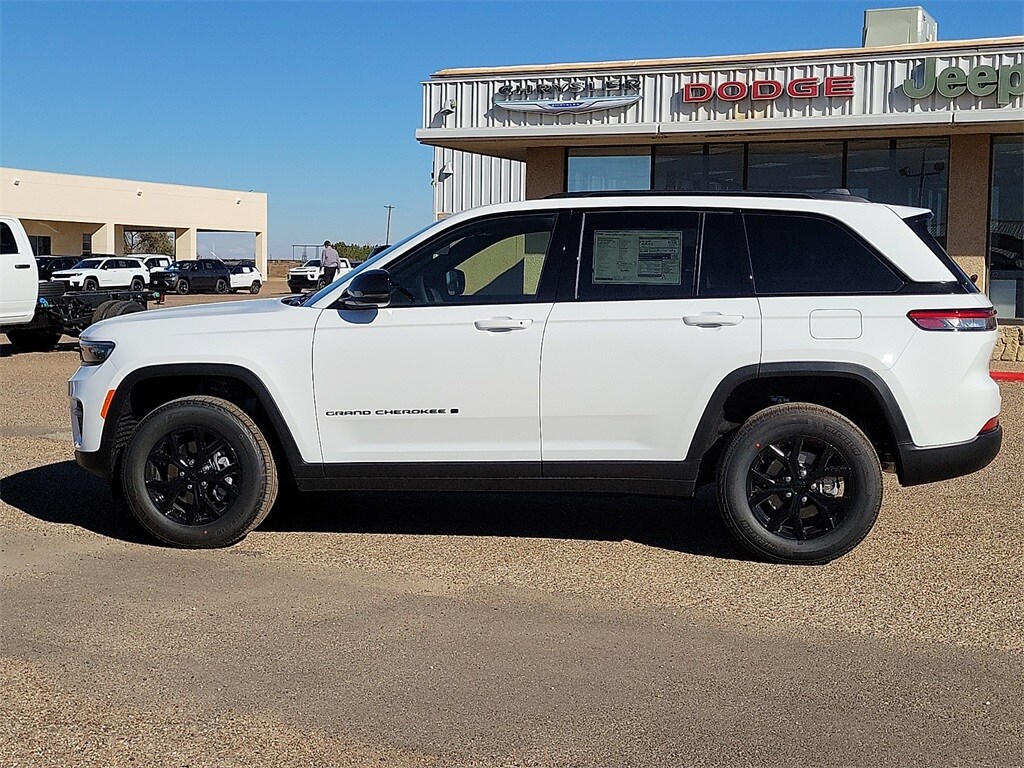 This 2025 Jeep Grand Cherokee Altitude X in Bright White Clearcoat comes with the following features: 3.6L V6 24V VVT 8-Speed Automatic 4WD 4WD Quick Order Package 23M Altitude X (115V Auxiliary Power Outlet, Altitude X, Black Headliner, Capri Leatherette/Suede Seats, Delete Laredo Badge, Gloss Black Exterior Accents, Heated Front Seats, Heated Steering Wheel, Power Liftgate, Power Sunroof, Rain Sensitive Windshield Wipers, Remote Start System, Selectable Tire Fill Alert, Wheels: 18" x 8" Fully Painted Aluminum 1, and Wireless Charging Pad), 4WD, 4-Wheel Disc Brakes, 6 Speakers, ABS brakes, Air Conditioning, Alloy wheels, AM/FM radio: SiriusXM, Anti-whiplash front head restraints, Automatic temperature control, Brake assist, Bumpers: body-color, Cloth Seats, Compass, Delay-off headlights, Driver door bin, Driver vanity mirror, Dual front impact airbags, Dual front side impact airbags, Electronic Stability Control, Emergency communication system, Four wheel independent suspension, Front anti-roll bar, Front Bucket Seats, Front Center Armrest w/Storage, Front dual zone A/C, Front License Plate Bracket, Front reading lights, Fully automatic headlights, Heated door mirrors, Illuminated entry, Knee airbag, Low tire pressure warning, Model Year Tracking, Normal Duty Suspension, Occupant sensing airbag, Outside temperature display, Overhead airbag, Overhead console, Panic alarm, ParkView Rear Back-Up Camera, Passenger door bin, Passenger vanity mirror, Power door mirrors, Power driver seat, Power steering, Power windows, Radio data system, Rear anti-roll bar, Rear reading lights, Rear window defroster, Rear window wiper, Remote keyless entry, Security system, Speed control, Speed-Sensitive Wipers, Split folding rear seat, Spoiler, Steering wheel mounted audio controls, Tachometer, Telescoping steering wheel, Tilt steering wheel, Traction control, Trip computer, Variably intermittent wipers, Voltmeter, and Wheels: 17" x 6.5" Fully Painted Aluminum.