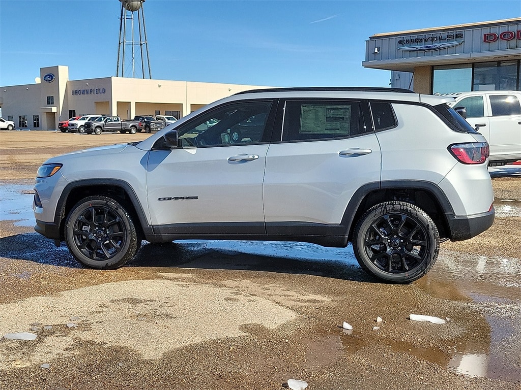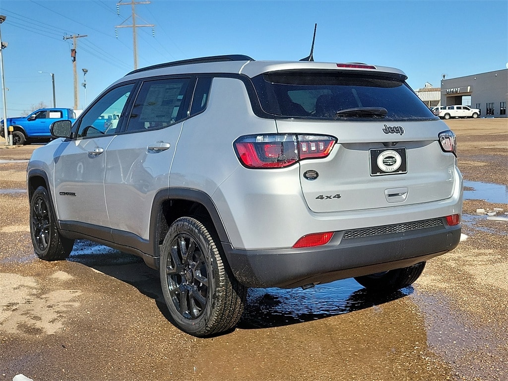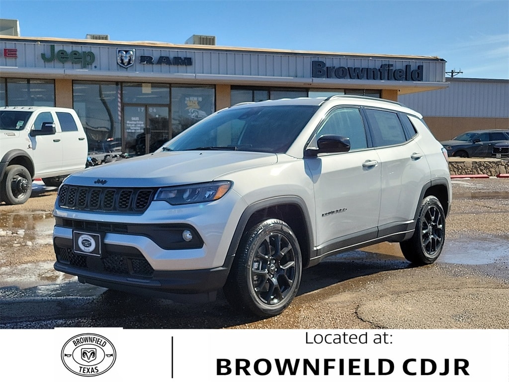 This 2026 Jeep Compass Latitude in silver zynith metallic clearcoat comes with the following features: 2.0L I4 DOHC 8-Speed Automatic 4WD 4WD Quick Order Package 29N Altitude (10.1" Touchscreen Display, Altitude Special Edition, Black Day Light Opening Moldings, Gloss Black Surround/Neutral Gray Rings, Neutral Gray Exterior Badging, Piano Black Interior Accents, Sliding Sun Visors with Illuminated Mirrors, and Wheels: 18" x 7" Gloss Black Painted Aluminum), 4WD, 17" x 7" Aluminum Wheels, 3.73 Final Drive Ratio, 4-Wheel Disc Brakes, 4G LTE Wi-Fi Hot Spot, 6 Speakers, ABS brakes, Air Conditioning, AM/FM radio: SiriusXM, Auto High-beam Headlights, Automatic temperature control, Bluetooth Handsfree Phone and Audio, Brake assist, Bumpers: body-color, Compass, Delay-off headlights, Driver door bin, Driver vanity mirror, Dual front impact airbags, Dual front side impact airbags, Electronic Stability Control, Emergency communication system: SiriusXM Guardian, Four wheel independent suspension, Front anti-roll bar, Front Bucket Seats, Front Center Armrest w/Storage, Front fog lights, Front License Plate Bracket, Front reading lights, Fully automatic headlights, Global Telematics Box Module, Heated door mirrors, Heated front seats, Heated steering wheel, Illuminated entry, Knee airbag, Leather Shift Knob, Leather steering wheel, Low tire pressure warning, MyFlexCare Service Plan, Occupant sensing airbag, Outside temperature display, Overhead airbag, Overhead console, Panic alarm, ParkView Rear Back-Up Camera, Passenger door bin, Passenger vanity mirror, Power door mirrors, Power steering, Power windows, Premium audio system: UConnect 5, Premium Cloth/Vinyl Bucket Seats, Radio: Uconnect 5 with 8.4" Display, Rear anti-roll bar, Rear seat center armrest, Rear window defroster, Rear window wiper, Remote keyless entry, Security system, SiriusXM Satellite Radio, Speed control, Split folding rear seat, Spoiler, Steering wheel mounted audio controls, Tachometer, Telescoping steering wheel, Tilt steering wheel, Traction control, Trip computer, and Variably intermittent wipers.