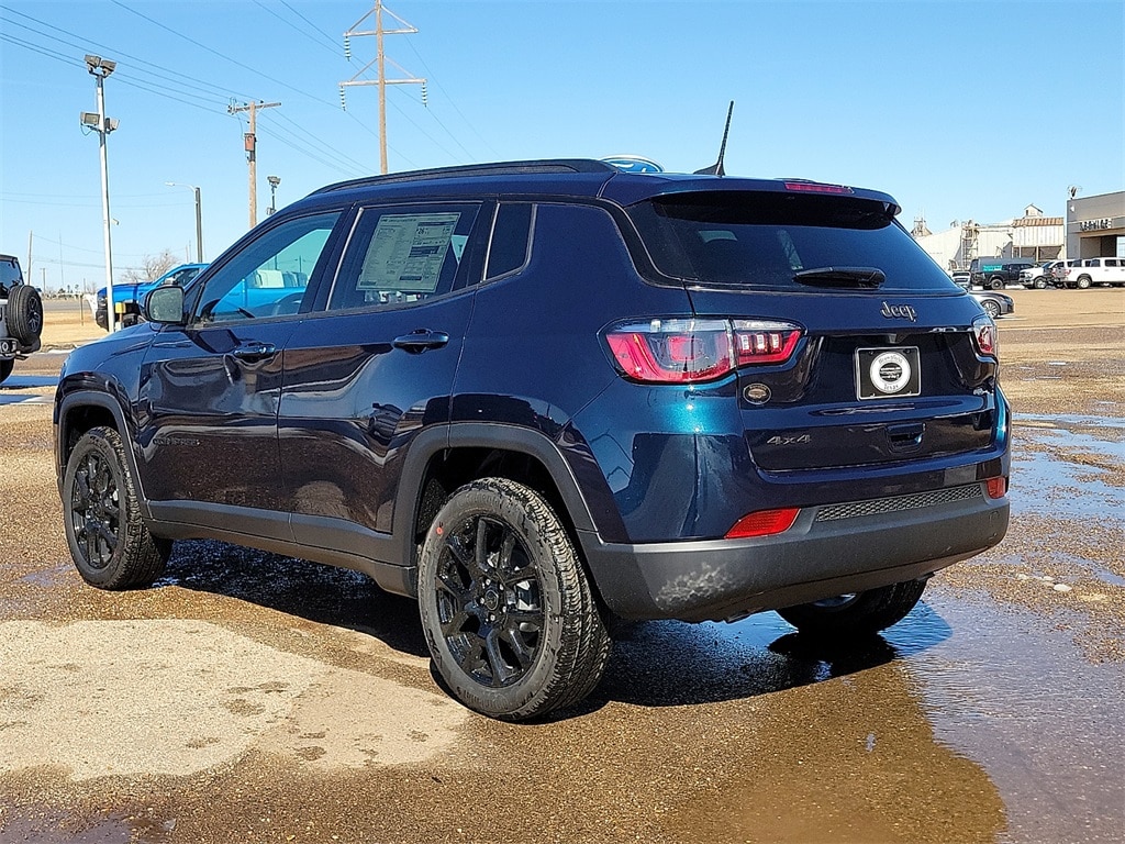 This 2026 Jeep Compass Latitude in fathom blue pearl coat comes with the following features: 2.0L I4 DOHC 8-Speed Automatic 4WD 4WD Quick Order Package 29N Altitude (10.1" Touchscreen Display, Altitude Special Edition, Black Day Light Opening Moldings, Gloss Black Surround/Neutral Gray Rings, Neutral Gray Exterior Badging, Piano Black Interior Accents, Sliding Sun Visors with Illuminated Mirrors, and Wheels: 18" x 7" Gloss Black Painted Aluminum), 4WD, 17" x 7" Aluminum Wheels, 3.73 Final Drive Ratio, 4-Wheel Disc Brakes, 4G LTE Wi-Fi Hot Spot, 6 Speakers, ABS brakes, Air Conditioning, AM/FM radio: SiriusXM, Auto High-beam Headlights, Automatic temperature control, Bluetooth Handsfree Phone and Audio, Brake assist, Bumpers: body-color, Compass, Delay-off headlights, Driver door bin, Driver vanity mirror, Dual front impact airbags, Dual front side impact airbags, Electronic Stability Control, Emergency communication system: SiriusXM Guardian, Four wheel independent suspension, Front anti-roll bar, Front Bucket Seats, Front Center Armrest w/Storage, Front fog lights, Front License Plate Bracket, Front reading lights, Fully automatic headlights, Global Telematics Box Module, Heated door mirrors, Heated front seats, Heated steering wheel, Illuminated entry, Knee airbag, Leather Shift Knob, Leather steering wheel, Low tire pressure warning, MyFlexCare Service Plan, Occupant sensing airbag, Outside temperature display, Overhead airbag, Overhead console, Panic alarm, ParkView Rear Back-Up Camera, Passenger door bin, Passenger vanity mirror, Power door mirrors, Power steering, Power windows, Premium audio system: UConnect 5, Premium Cloth/Vinyl Bucket Seats, Radio: Uconnect 5 with 8.4" Display, Rear anti-roll bar, Rear seat center armrest, Rear window defroster, Rear window wiper, Remote keyless entry, Security system, SiriusXM Satellite Radio, Speed control, Split folding rear seat, Spoiler, Steering wheel mounted audio controls, Tachometer, Telescoping steering wheel, Tilt steering wheel, Traction control, Trip computer, and Variably intermittent wipers.