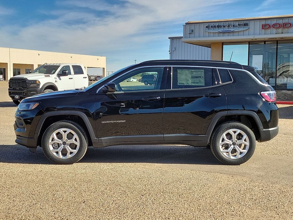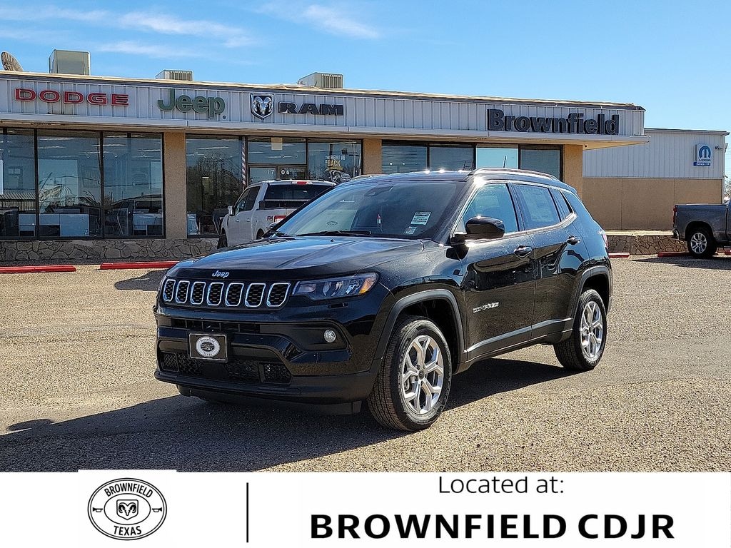 This 2026 Jeep Compass Latitude in Diamond Black Crystal Pearlcoat comes with the following features: 2.0L I4 DOHC 8-Speed Automatic 4WD 4WD Quick Order Package 29J Latitude, 4WD, 17" x 7" Aluminum Wheels, 3.73 Final Drive Ratio, 4-Wheel Disc Brakes, 4G LTE Wi-Fi Hot Spot, 6 Speakers, ABS brakes, Air Conditioning, AM/FM radio: SiriusXM, Auto High-beam Headlights, Automatic temperature control, Bluetooth Handsfree Phone and Audio, Brake assist, Bumpers: body-color, Compass, Delay-off headlights, Driver door bin, Driver vanity mirror, Dual front impact airbags, Dual front side impact airbags, Electronic Stability Control, Emergency communication system: SiriusXM Guardian, Four wheel independent suspension, Front anti-roll bar, Front Bucket Seats, Front Center Armrest w/Storage, Front fog lights, Front License Plate Bracket, Front reading lights, Fully automatic headlights, Global Telematics Box Module, Heated door mirrors, Heated front seats, Heated steering wheel, Illuminated entry, Knee airbag, Leather Shift Knob, Leather steering wheel, Low tire pressure warning, MyFlexCare Service Plan, Occupant sensing airbag, Outside temperature display, Overhead airbag, Overhead console, Panic alarm, ParkView Rear Back-Up Camera, Passenger door bin, Passenger vanity mirror, Power door mirrors, Power steering, Power windows, Premium audio system: UConnect 5, Premium Cloth/Vinyl Bucket Seats, Radio: Uconnect 5 with 8.4" Display, Rear anti-roll bar, Rear seat center armrest, Rear window defroster, Rear window wiper, Remote keyless entry, Security system, SiriusXM Satellite Radio, Speed control, Split folding rear seat, Spoiler, Steering wheel mounted audio controls, Tachometer, Telescoping steering wheel, Tilt steering wheel, Traction control, Trip computer, and Variably intermittent wipers.