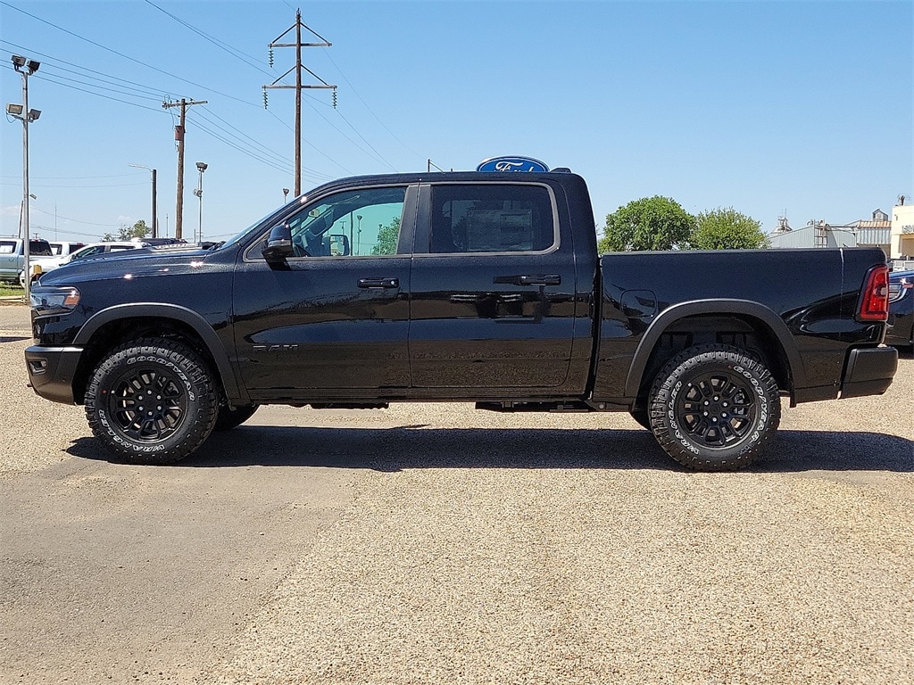 This 2025 Ram 1500 Rebel in Diamond Black Crystal Pearlcoat comes with the following features: 3.0L I6 8-Speed Automatic 4WD Quick Order Package 21W Rebel, Rebel Level 2 Equipment Group (115V Auxiliary Rear Power Outlet, 2-Door Passive Entry, Front Door Locks, 4G LTE Wi-Fi Hot Spot, Accent Color Door Handles, Accent Color Premium Power Mirrors, Accent Color Tailgate Handle, Apple CarPlay, Auto Power-Folding Mirrors, Auto-Dimming Exterior Driver Mirror, Black Painted Exterior Mirrors Caps, Connected Travel & Traffic Services, Connectivity - US/Canada, Convex Wide-Angle Exterior Mirror Insert, Driver Seat Memory, Dual Wireless Charging Pad, Exterior Mirrors Approach Lamps, Exterior Mirrors Courtesy Lamps, Exterior Mirrors w/Heating Element, Exterior Mirrors w/Memory, Exterior Mirrors w/Supplemental Signals, Front Passenger Interactive Display, Google Android Auto, GPS Antenna Input, GPS Navigation, harman/kardon 19 Speaker Premium Sound, HD Radio, Heated Second Row Seats, Integrated Voice Command w/Bluetooth, Media Hub w/2 Charge Only USBs, Off-Road Information Pages, Power Adjust 8-Way Front Passenger Seat, Power Adjustable Pedals w/Memory, Power Tailgate, Proximity Approach/Departure Lamps, Radio: Uconnect 5 Nav w/14.4" Display, Radio/Driver Seat/Mirrors/Pedals Memory, Rain Sensitive Windshield Wipers, Rear Window Defroster, Security Alarm, SiriusXM w/360L, Smartphone As A Key Capable, and USB Host Flip), 10 Speakers, 3.92 Rear Axle Ratio, 4 Way Front Headrests, 4-Wheel Disc Brakes, ABS brakes, Air Conditioning, Alloy wheels, AM/FM radio: SiriusXM with 360L, Apple CarPlay/Android Auto, Auto High-beam Headlights, Auto-dimming Rear-View mirror, Automatic temperature control, Brake assist, Bucket Seats, Cloth/Vinyl Bucket Seats, Compass, Delay-off headlights, Dome Dual LED Reading Lamp, Driver door bin, Driver vanity mirror, Dual front impact airbags, Dual front side impact airbags, Dual-Pane Panoramic Sunroof, Electronic Stability Control, Front anti-roll bar, Front Bucket Seats, Front Center Armrest w/Storage, Front dual zone A/C, Front fog lights, Front License Plate Bracket, Front reading lights, Front Seat Back Map Pockets, Front wheel independent suspension, Full Length Upgraded Floor Console, Fully automatic headlights, Garage door transmitter, Heated door mirrors, Heated front seats, Heated steering wheel, Illuminated entry, Leather steering wheel, Low tire pressure warning, Manual Folding Exterior Mirrors, Navigation System, Occupant sensing airbag, Outside temperature display, Overhead airbag, Overhead console, Panic alarm, ParkView Rear Back-Up Camera, Passenger door bin, Passenger vanity mirror, Power Adjust 8-Way Driver Seat, Power door mirrors, Power driver seat, Power steering, Power windows, Radio data system, Radio: Uconnect 5 Nav w/12.0" Display, Rear 60/40 Folding Seat, Rear anti-roll bar, Rear seat center armrest, Rear step bumper, Remote keyless entry, Speed control, Split folding rear seat, Steering wheel mounted audio controls, Tachometer, Telescoping steering wheel, Tilt steering wheel, Traction control, Trailer Brake Control, Trip computer, Variably intermittent wipers, Voltmeter, and Wheels: 18" x 8.0" Painted Mid-Gloss Black.