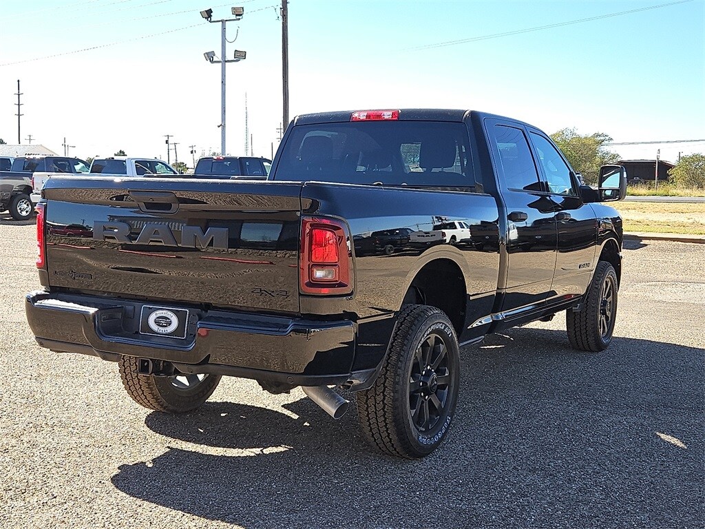 This 2025 Ram 2500 Big Horn in Diamond Black Crystal Pearlcoat comes with the following features: 6.7L I6 8-Speed Automatic 4WD Big Horn Level 1 Plus Equipment Group (12" Touchscreen Display, 2 Way Rear Headrest Seat, 2nd Row In Floor Storage Bins, 4 Way Front Headrests, 40/20/40 Split Bench Seat, 4G LTE Wi-Fi Hot Spot, 9 Alpine Speakers w/Subwoofer, Air Conditioning ATC w/Dual Zone Control, Alexa Built-In, Anti-Spin Differential Rear Axle, Apple CarPlay, Auto Power-Folding Mirrors, Auto-Dimming Rear-View Mirror, Black Exterior Mirrors, Connected Travel & Traffic Services, Connectivity - US/Canada, Dual Glove Boxes, Emergency Vehicle Alert System (EVAS), Exterior Mirrors Courtesy Lamps, Exterior Mirrors w/Heating Element, Exterior Mirrors w/Supplemental Signals, Foam Bottle Insert (Door Trim Panel), Folding Flat Load Floor Storage, Footwell Courtesy Lamp, Forward & Reverse Utility Lights, Front Armrest w/Cupholders, Front Center Seat Cushion Storage, Front Seat Back Map Pockets, Global Telematics Box Module (TBM), Glove Box Lamp, Google Android Auto, GPS Antenna Input, GPS Navigation, HD Radio, Integrated Voice Command w/Bluetooth, LED Bed Lighting, Locking Lower Glove Box, Luxury Steering Wheel, Manual Adjust 4-Way Front Passenger Seat, Mirror Running Lights, MOPAR Deployable Bed Step, MOPAR Spray In Bedliner, Off-Road Info Pages, Power 2-Way Driver Lumbar Adjust, Power Adjust 8-Way Driver Seat, Power Adjust Mirrors, Power Adjustable Convex Aux Mirrors, Power Heated Folding Telescopic Mirrors, Power Telescoping Mirrors, Premium Cloth 40/20/40 Bench Seat, Radio: Uconnect 5 Nav w/12.0" Display, Rear 60/40 Folding Seat, Rear Dome w/On/Off Switch Lamp, Remote Start System, Remote USB Port - Charge Only, Selectable Tire Fill Alert, SiriusXM Radio Service, SiriusXM w/360L, Steering Wheel Mounted Audio Controls, Storage Tray, and Trailer Tow Pages), Night Edition (Black Exterior Truck Badging, Black Interior Accents, Black Wheel Center Hub, Body Color Grille Surround, Gloss Black Nostrils/Mic Black Grille, Painted Front Bumper, Painted Rear Bumper, and Wheels: 20" x 8.0" Black Painted Aluminum), Quick Order Package 24Y Lone Star (Regional) (Lone Star Badge), 4-Wheel Disc Brakes, 6 Speakers, ABS brakes, Air Conditioning, Alloy wheels, AM/FM radio: SiriusXM, Apple CarPlay/Android Auto, Brake assist, Bumpers: chrome, Clearance Lamps, Cloth 40/20/40 Bench Seat, Compass, Delay-off headlights, Driver door bin, Dual front impact airbags, Dual front side impact airbags, Electronic Stability Control, Front anti-roll bar, Front Center Armrest w/Storage, Front fog lights, Front License Plate Bracket, Front reading lights, Fully automatic headlights, Heated door mirrors, Illuminated entry, Low tire pressure warning, Manual Adjust 4-Way Driver Seat, MOPAR Front & Rear Rubber Floor Mats, Occupant sensing airbag, Outside temperature display, Overhead airbag, Overhead console, Panic alarm, ParkView Rear Back-Up Camera, Passenger door bin, Passenger vanity mirror, Power door mirrors, Power steering, Power windows, Radio data system, Radio: Uconnect 5 w/8.4" Display, Rear anti-roll bar, Rear Folding Seat, Rear seat center armrest, Rear step bumper, Rear window defroster, Remote keyless entry, Security system, Speed control, Tachometer, Tilt steering wheel, Traction control, Trip computer, Turn signal indicator mirrors, Variably intermittent wipers, Vinyl 2nd Row Seat, Voltmeter, and Wheels: 18" x 8.0" Polished Aluminum. Price includes: $2000 - 2025 National Bonus Cash . Exp. 12/01/2025