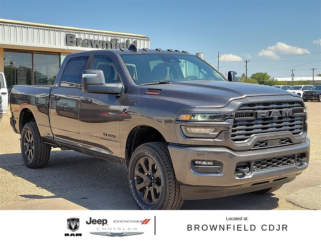 This 2025 Ram 2500 Big Horn in Granite Crystal Metallic Clearcoat comes with the following features: 6.7L I6 8-Speed Automatic 4WD Big Horn Level 1 Plus Equipment Group (12" Touchscreen Display, 2 Way Rear Headrest Seat, 2nd Row In Floor Storage Bins, 4 Way Front Headrests, 40/20/40 Split Bench Seat, 4G LTE Wi-Fi Hot Spot, 9 Alpine Speakers w/Subwoofer, Air Conditioning ATC w/Dual Zone Control, Alexa Built-In, Anti-Spin Differential Rear Axle, Apple CarPlay, Auto Power-Folding Mirrors, Auto-Dimming Rear-View Mirror, Black Exterior Mirrors, Connected Travel & Traffic Services, Connectivity - US/Canada, Dual Glove Boxes, Emergency Vehicle Alert System (EVAS), Exterior Mirrors Courtesy Lamps, Exterior Mirrors w/Heating Element, Exterior Mirrors w/Supplemental Signals, Foam Bottle Insert (Door Trim Panel), Folding Flat Load Floor Storage, Footwell Courtesy Lamp, Forward & Reverse Utility Lights, Front Armrest w/Cupholders, Front Center Seat Cushion Storage, Front Seat Back Map Pockets, Global Telematics Box Module (TBM), Glove Box Lamp, Google Android Auto, GPS Antenna Input, GPS Navigation, HD Radio, Integrated Voice Command w/Bluetooth, LED Bed Lighting, Locking Lower Glove Box, Luxury Steering Wheel, Manual Adjust 4-Way Front Passenger Seat, Mirror Running Lights, MOPAR Deployable Bed Step, MOPAR Spray In Bedliner, Off-Road Info Pages, Power 2-Way Driver Lumbar Adjust, Power Adjust 8-Way Driver Seat, Power Adjust Mirrors, Power Adjustable Convex Aux Mirrors, Power Heated Folding Telescopic Mirrors, Power Telescoping Mirrors, Premium Cloth 40/20/40 Bench Seat, Radio: Uconnect 5 Nav w/12.0" Display, Rear 60/40 Folding Seat, Rear Dome w/On/Off Switch Lamp, Remote Start System, Remote USB Port - Charge Only, Selectable Tire Fill Alert, SiriusXM Radio Service, SiriusXM w/360L, Steering Wheel Mounted Audio Controls, Storage Tray, and Trailer Tow Pages), Night Edition (Black Exterior Truck Badging, Black Interior Accents, Black Wheel Center Hub, Body Color Grille Surround, Gloss Black Nostrils/Mic Black Grille, Painted Front Bumper, Painted Rear Bumper, and Wheels: 20" x 8.0" Black Painted Aluminum), Quick Order Package 24Y Lone Star (Regional) (Lone Star Badge), 3.42 Axle Ratio, 3.73 Axle Ratio, 4-Wheel Disc Brakes, 6 Speakers, ABS brakes, Air Conditioning, Alloy wheels, AM/FM radio: SiriusXM, Apple CarPlay/Android Auto, Brake assist, Bumpers: chrome, Clearance Lamps, Cloth 40/20/40 Bench Seat, Compass, Delay-off headlights, Driver door bin, Dual front impact airbags, Dual front side impact airbags, Electronic Stability Control, Front anti-roll bar, Front Center Armrest w/Storage, Front fog lights, Front License Plate Bracket, Front reading lights, Fully automatic headlights, Heated door mirrors, Illuminated entry, Low tire pressure warning, Manual Adjust 4-Way Driver Seat, MOPAR Front & Rear Rubber Floor Mats, Occupant sensing airbag, Outside temperature display, Overhead airbag, Overhead console, Panic alarm, ParkView Rear Back-Up Camera, Passenger door bin, Passenger vanity mirror, Power door mirrors, Power steering, Power windows, Radio data system, Radio: Uconnect 5 w/8.4" Display, Rear anti-roll bar, Rear Folding Seat, Rear seat center armrest, Rear step bumper, Rear window defroster, Remote keyless entry, Security system, Speed control, Tachometer, Tilt steering wheel, Traction control, Trip computer, Turn signal indicator mirrors, Variably intermittent wipers, Vinyl 2nd Row Seat, Voltmeter, and Wheels: 18" x 8.0" Polished Aluminum. Price includes: $2000 - 2025 National Bonus Cash . Exp. 11/03/2025