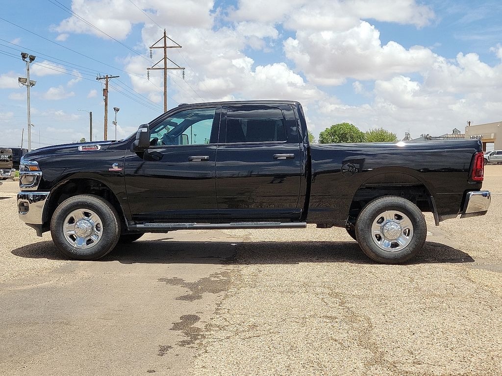 This 2025 Ram 2500 Tradesman in Diamond Black Crystal Pearlcoat comes with the following features: 6.7L I6 8-Speed Automatic 4WD Bed Convenience Group (LED Bed Lighting and MOPAR Spray In Bedliner), Quick Order Package 24A Tradesman, Tradesman Level 2 Equipment Group (115V Auxiliary Front Power Outlet, 12" Touchscreen Display, 2 Way Rear Headrest Seat, 4 Way Front Headrests, 40/20/40 Split Bench Seat, 400W Inverter, 4G LTE Wi-Fi Hot Spot, Air Conditioning ATC w/Dual Zone Control, Alexa Built-In, Anti-Spin Differential Rear Axle, Apple CarPlay, Auto-Dimming Rear-View Mirror, Black Exterior Mirrors, Bright Front Bumper, Bright Rear Bumper, Carpet Floor Covering, Center Hub, Chrome Grille Surround, Cloth 40/20/40 Bench Seat, Connected Travel & Traffic Services, Connectivity - US/Canada, Disassociated Touchscreen Display, Emergency Vehicle Alert System (EVAS), Exterior 115V AC Outlet, Exterior Mirrors Courtesy Lamps, Exterior Mirrors w/Heating Element, Exterior Mirrors w/Supplemental Signals, Front & Rear Floor Mats, Front Armrest w/Cupholders, Global Telematics Box Module (TBM), Google Android Auto, GPS Antenna Input, GPS Navigation, HD Radio, Integrated Voice Command w/Bluetooth, Manual Adjust 4-Way Driver Seat, Manual Adjust 4-Way Front Passenger Seat, Manual Folding Exterior Mirrors, Manual Telescoping Mirrors, Matte Black Mesh Grille w/Chrome, Mirror Running Lights, Mopar Black Tubular Side Steps, Off-Road Info Pages, ParkSense Front/Rear Park Assist System, Power Adjust Mirrors, Power Adjustable Convex Aux Mirrors, Power Heated Folding Telescope Mirrors, Radio: Uconnect 5 Nav w/12.0" Display, Rear Folding Seat, Rear Power Sliding Window, Remote USB Port - Charge Only, Selectable Tire Fill Alert, SiriusXM Radio Service, SiriusXM w/360L, Storage Tray, Tinted Acoustic Windshield Glass, Trailer Tow Pages, and Wheels: 18" x 8.0" Steel Chrome Clad), 3.42 Axle Ratio, 3.73 Axle Ratio, 4-Wheel Disc Brakes, 6 Speakers, ABS brakes, Air Conditioning, AM/FM radio: SiriusXM, Apple CarPlay/Android Auto, Black Wheel Center Hub, Brake assist, Clearance Lamps, Compass, Delay-off headlights, Driver door bin, Dual front impact airbags, Dual front side impact airbags, Electronic Stability Control, Front anti-roll bar, Front Center Armrest w/Storage, Front fog lights, Front License Plate Bracket, Front reading lights, Fully automatic headlights, Heavy Duty Vinyl 40/20/40 Split Bench Seat, Illuminated entry, Low tire pressure warning, Occupant sensing airbag, Outside temperature display, Overhead airbag, Overhead console, Panic alarm, ParkView Rear Back-Up Camera, Passenger door bin, Passenger vanity mirror, Power steering, Power windows, Radio data system, Radio: Uconnect 5 w/8.4" Display, Rear anti-roll bar, Rear step bumper, Rear window defroster, Remote keyless entry, Speed control, Tachometer, Tilt steering wheel, Traction control, Variably intermittent wipers, Voltmeter, and Wheels: 17" x 7.5" Black Steel Styled.