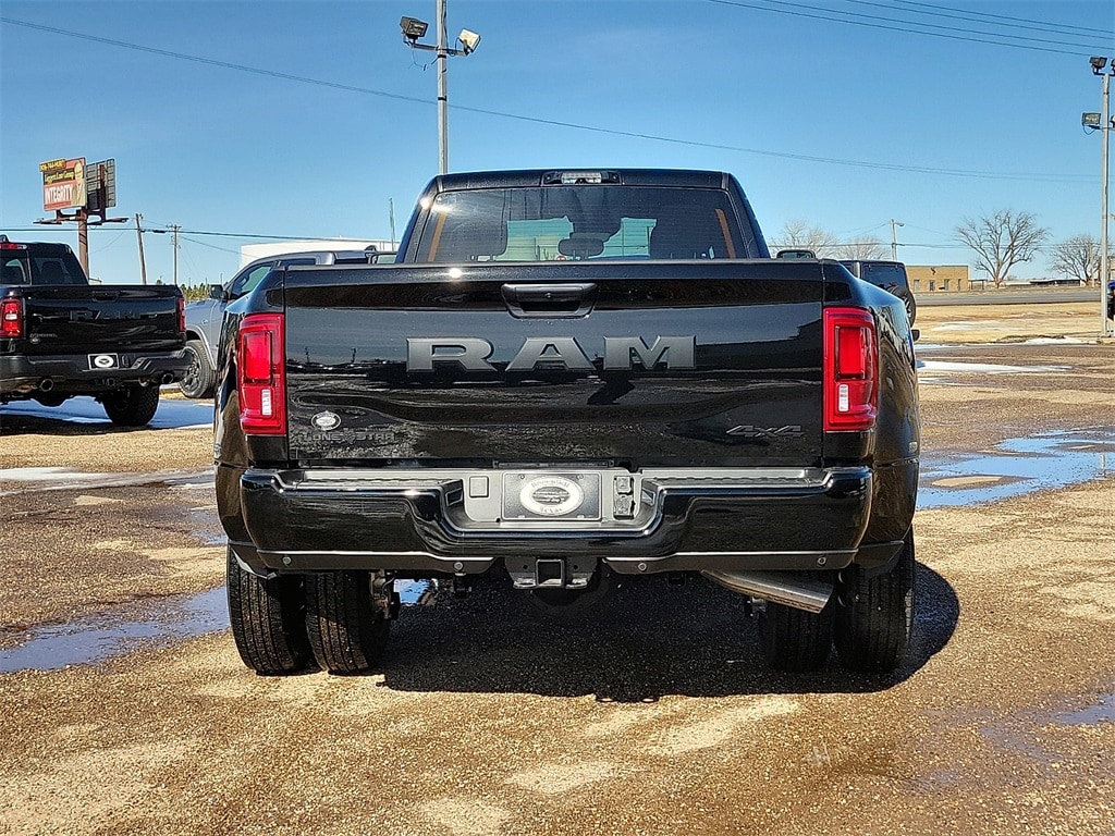 This 2026 Ram 3500 Big Horn in Diamond Black Crystal Pearlcoat comes with the following features: 6.7L I6 8-Speed Automatic 4WD Big Horn Level 1 Plus Equipment Group (12" Touchscreen Display, 2 Way Rear Headrest Seat, 2nd Row in Floor Storage Bins, 4 Way Front Headrests, 40/20/40 Split Bench Seat, 4G LTE Wi-Fi Hot Spot, 9 Alpine Speakers with Subwoofer, Air Conditioning ATC with Dual Zone Control, Alexa Built-in, Apple CarPlay, Auto Power-Folding Mirrors, Auto-Dimming Rear-View Mirror, Black Exterior Mirrors, Cloth 40/20/40 Premium Bench Seat, Connected Travel and Traffic Services, Connectivity - US/Canada, Disassociated Touchscreen Display, Dual Glove Boxes, Emergency Vehicle Alert System (EVAS), Exterior Mirrors Courtesy Lamps, Exterior Mirrors with Heating Element, Exterior Mirrors with Supplemental Signals, Foam Bottle Insert (door Trim Panel), Folding Flat Load Floor Storage, Footwell Courtesy Lamp, For Details Visit DriveUconnect.com, For More Info, Call 800-643-2112, Forward and Reverse Utility Lights, Front Armrest with Cupholders, Front Center Seat Cushion Storage, Front Seat Back Map Pockets, Global Telematics Box Module, Glove Box Lamp, Google Android Auto, GPS Antenna Input, GPS Navigation, HD Radio, Integrated Voice Command with Bluetooth, LED Bed Lighting, Locking Lower Glove Box, Luxury Steering Wheel, Manual Adjust 4-Way Front Passenger Seat, Mirror Running Lights, MOPAR Deployable Bed Step, MOPAR Spray in Bedliner, Off-Road Information Pages, Power 2-Way Driver Lumbar Adjust, Power Adjust 8-Way Driver Seat, Power Adjust Mirrors, Power Heated Fold Telescopic Mirrors, Power Telescoping Mirrors, Power-Adjustable Convex Aux Mirrors, Radio: Uconnect 5 Navigation with 12.0" Display, Rear 60/40 Folding Seat, Rear Dome with on/Off Switch Lamp, Remote Start System, Remote USB Port - Charge Only, Selectable Tire Fill Alert, SiriusXM Radio Service, SiriusXM with 360L, Steering Wheel Mounted Audio Controls, Storage Tray, and Trailer Tow Pages), Heated Seats and Wheel Group (Heated Front Seats and Heated Steering Wheel), Max Tow Package (5th Wheel/Gooseneck Towing Prep Group), Night Edition (Black Exterior Truck Badging, Black Interior Accents, Black Wheel Center Hub, Body Color Grille Surround, Gloss Black Nostrils/Molded in Color Black Grille, Painted Front Bumper, and Painted Rear Bumper), Quick Order Package 24Y Lone Star (Lone Star Badge), Towing Technology Group (Blind Spot and Cross Path Detection, Center Stop Lamp with Cargo View Camera, LED Tail Lamps, Red Tail Lamp Bezels, Surround View Camera System, Trailer Reverse Guidance, and Trailer Tire Pressure Monitoring System), 4-Wheel Disc Brakes, 50 Gallon Fuel Tank, 6 Speakers, 6000# Front Axle with Hub Extension, ABS brakes, Air Conditioning, Alloy wheels, AM/FM radio: SiriusXM, Apple CarPlay/Android Auto, Box and Rear Fender Clearance Lamps, Brake assist, Bumpers: chrome, Center Hub, Clearance Lamps, Cloth 40/20/40 Bench Seat, Compass, Delay-off headlights, Driver door bin, Dual front impact airbags, Dual front side impact airbags, Dual Rear Wheels, Electronic Stability Control, Front anti-roll bar, Front Center Armrest w/Storage, Front fog lights, Front License Plate Bracket, Front reading lights, Fully automatic headlights, Heated door mirrors, Illuminated entry, Low tire pressure warning, Manual Adjust 4-Way Driver Seat, MOPAR Front and Rear Rubber Floor Mats, MyFlexCare Service Diesel, Nexen Brand Tires, Occupant sensing airbag, Outside temperature display, Overhead airbag, Overhead console, Painted Flat Cab-Length Side Steps, Panic alarm, ParkView Rear Back-Up Camera, Passenger door bin, Passenger vanity mirror, Power door mirrors, Power steering, Power windows, Radio data system, Radio: Uconnect 5 with 8.4" Display, Rear Folding Seat, Rear seat center armrest, Rear step bumper, Rear Wheel