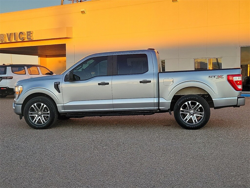 This 2021 Ford F-150 XL 2.7L V6 EcoBoost 10-Speed Automatic RWD in Silver comes with the following features: Equipment Group 101A High (Cruise Control and Reverse Sensing System), STX Appearance Package (Fog Lamps, Rear Window Defroster, Rear Window Fixed Privacy Glass, Unique Sport Cloth 40/20/40 Front-Seats, and Wheels: 18" 6-Spoke Machined-Aluminum), 20" 6-Spoke Machined-Aluminum Wheels, 3.55 Axle Ratio, 4-Wheel Disc Brakes, 6 Speakers, ABS brakes, Air Conditioning, AM/FM radio, Auto High Beam, Auto High-beam Headlights, Black Platform Running Boards, Brake assist, Class IV Trailer Hitch Receiver, Cloth 40/20/40 Front Seat, Color-Coordinated Carpet w/Carpeted Floor Mats, Compass, Delay-off headlights, Driver door bin, Dual front impact airbags, Dual front side impact airbags, Electronic Stability Control, Emergency communication system: SYNC 4 911 Assist, Exterior Parking Camera Rear, Front anti-roll bar, Front Center Armrest, Front reading lights, Front wheel independent suspension, Fully automatic headlights, Illuminated entry, Lane-Keeping System, Low tire pressure warning, Occupant sensing airbag, Outside temperature display, Overhead airbag, Overhead console, Panic alarm, Passenger door bin, Passenger vanity mirror, Power door mirrors, Power steering, Power windows, Pre-Collision Assist w/Automatic Emergency Braking, Radio data system, Radio: AM/FM SiriusXM w/360L, Radio: AM/FM Stereo w/6 Speakers, Rear step bumper, Rear-View Camera, Remote keyless entry, Security system, Speed-sensing steering, Split folding rear seat, Steering wheel mounted audio controls, SYNC 4, SYNC 4 w/Enhanced Voice Recognition, Tachometer, Telescoping steering wheel, Tilt steering wheel, Traction control, Trip computer, Variably intermittent wipers, Voltmeter, and Wheels: 17" Silver Steel.