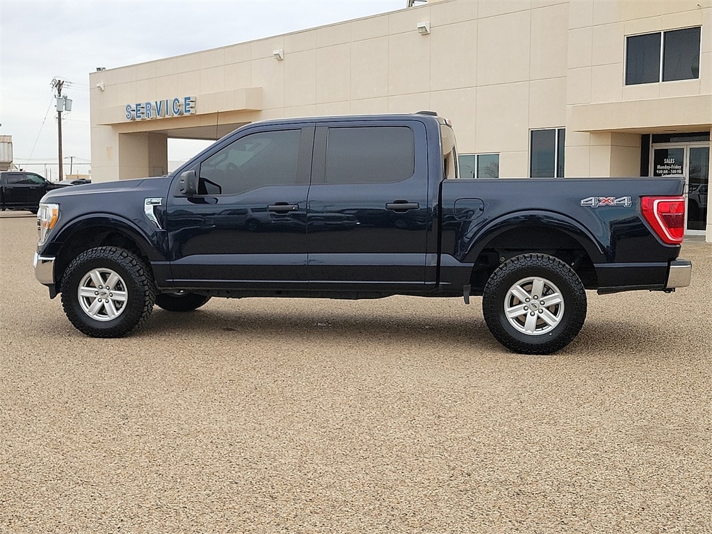 This 2021 Ford F-150 XLT 5.0L V8 10-Speed Automatic 4WD in Blue Metallic comes with the following features: 4WD, ABS brakes, Alloy wheels, Compass, Electronic Stability Control, Heated door mirrors, Illuminated entry, Low tire pressure warning, Remote keyless entry, and Traction control 4WD, ABS brakes, Alloy wheels, Compass, Electronic Stability Control, Heated door mirrors, Illuminated entry, Low tire pressure warning, Remote keyless entry, Traction control, 4-Wheel Disc Brakes, 6 Speakers, Air Conditioning, AM/FM radio, Auto High-beam Headlights, Brake assist, Bumpers: chrome, Cloth 40/20/40 Front Seat, Delay-off headlights, Driver door bin, Driver vanity mirror, Dual front impact airbags, Dual front side impact airbags, Emergency communication system: SYNC 4 911 Assist, Exterior Parking Camera Rear, Front anti-roll bar, Front Center Armrest w/Storage, Front fog lights, Front reading lights, Front wheel independent suspension, Fully automatic headlights, Occupant sensing airbag, Outside temperature display, Overhead airbag, Overhead console, Panic alarm, Passenger door bin, Passenger vanity mirror, Power door mirrors, Power steering, Power windows, Radio data system, Radio: AM/FM Stereo w/6 Speakers, Rear reading lights, Rear step bumper, Rear window defroster, Security system, Speed control, Speed-sensing steering, Split folding rear seat, Steering wheel mounted audio controls, SYNC 4, Tachometer, Telescoping steering wheel, Tilt steering wheel, Trip computer, Variably intermittent wipers, Voltmeter, and Wheels: 17" Silver Painted Aluminum.