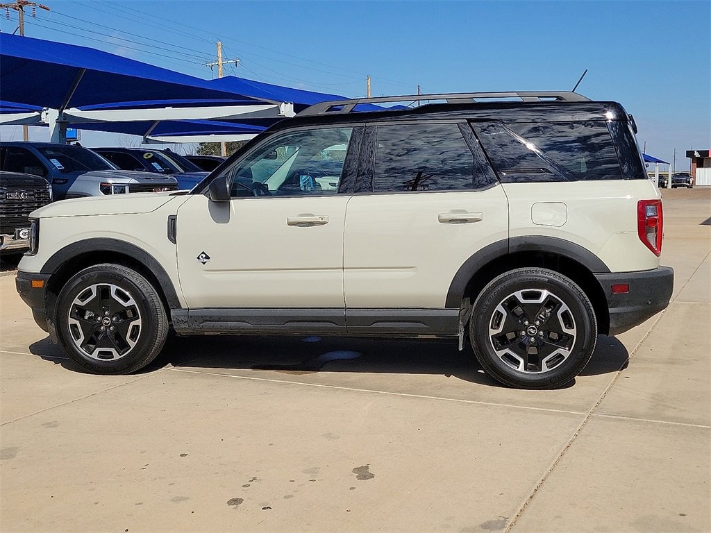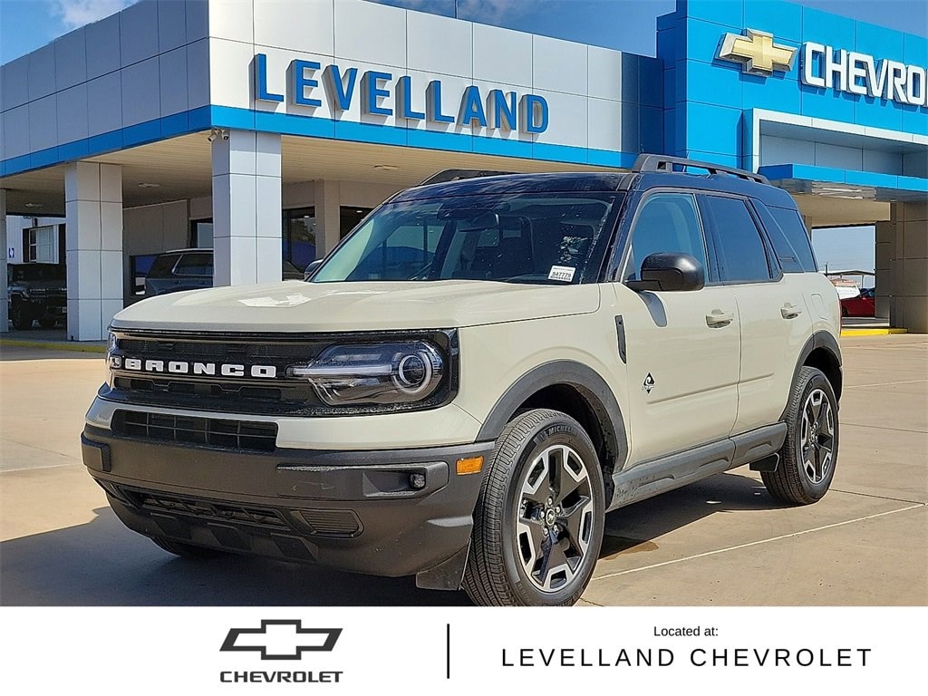 This 2024 Ford Bronco Sport Outer Banks 1.5L EcoBoost 8-Speed Automatic 4WD in Desert Sand comes with the following features: Equipment Group 300A, 3.80 Axle Ratio, 4-Wheel Disc Brakes, 6 Speakers, ABS brakes, Air Conditioning, Alloy wheels, AM/FM radio: SiriusXM, AM/FM Stereo, Auto High-beam Headlights, Auto-dimming Rear-View mirror, Automatic temperature control, Brake assist, Compass, Delay-off headlights, Driver door bin, Driver vanity mirror, Dual front impact airbags, Dual front side impact airbags, Electronic Stability Control, Emergency communication system: SYNC 3 911 Assist, Four wheel independent suspension, Front anti-roll bar, Front Bucket Seats, Front Center Armrest, Front dual zone A/C, Front fog lights, Front License Plate Bracket, Front reading lights, Fully automatic headlights, Heated door mirrors, Heated front seats, Heated steering wheel, Illuminated entry, Knee airbag, Low tire pressure warning, Memory seat, Occupant sensing airbag, Outside temperature display, Overhead airbag, Overhead console, Panic alarm, Passenger door bin, Passenger vanity mirror, Power door mirrors, Power driver seat, Power passenger seat, Power steering, Power windows, Premium-Trimmed Heated Sport Contour Bucket Seats, Radio data system, Rain sensing wipers, Rear anti-roll bar, Rear Parking Sensors, Rear reading lights, Rear seat center armrest, Rear window defroster, Rear window wiper, Remote keyless entry, Security system, SiriusXM, Speed control, Speed-sensing steering, Speed-Sensitive Wipers, Split folding rear seat, Steering wheel mounted audio controls, SYNC 3 Communications & Entertainment System, Tachometer, Telescoping steering wheel, Tilt steering wheel, Traction control, Trip computer, Variably intermittent wipers, and Wheels: 18 Ebony Black-Painted Aluminum.