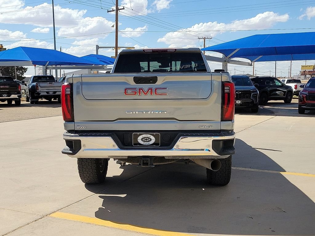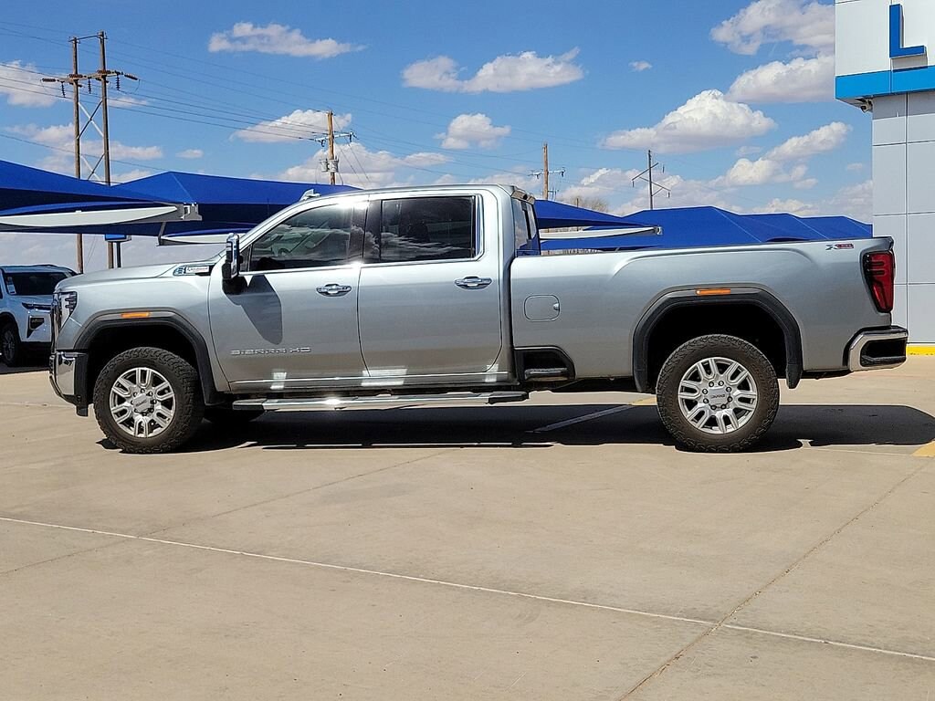 This 2024 GMC Sierra 2500HD SLT Duramax 6.6L V8 Turbodiesel 10-Speed Automatic 4WD in Sterling Metallic comes with the following features: 10-Speed Automatic, 4WD, and Jet Black Leather Gooseneck/5th Wheel Prep Package (HD Rear Vision Camera Delete and Spray-On Bedliner), Heavy Duty Front Spring/Camper Package, Hitch Package (LPO), Max Trailering Package, Preferred Equipment Group 4SA (120-Volt Bed Mounted Power Outlet, 120-Volt Instrument Panel Power Outlet, 2 Charge-Only Rear USB Ports, 2 Charge/Data USB Ports, 2-Speed Active Transfer Case, 6-Speaker Audio System Feature, Chrome Surround Grille w/Chrome Insert Bars, Deep-Tinted Glass, Electric Rear-Window Defogger, Front Rain-Sensing Wipers, GMC Connected Access Capable, Heated Driver & Front Outboard Passenger Seats, Integrated Trailer Brake Controller, Keyless Open & Start, LED Cargo Area Lighting, Manual Tilt-Wheel/Telescoping Steering Column, OnStar & GMC Connected Services Capable, Power Front Passenger Windows w/Express Up/Down, Push Button Start, Rear Wheelhouse Liners, Remote Vehicle Starter System, SiriusXM w/360L, Steering Wheel Audio Controls, Unauthorized Entry Theft-Deterrent System, and Wireless Phone Projection), Sierra HD Pro Safety Plus Package (Bed View Camera w/2 Trailer Camera Provisions, HD Surround Vision, Rear Cross Traffic Alert, Safety Alert Seat, Trailer Cam Provisions & Trailer Viewing Software, Trailer Side Blind Zone Alert, and Ultrasonic Front & Rear Park Assist), SLT Convenience Package (2 Charge/Data USB Ports Inside Center Console, Bose Premium 7-Speaker Sound System, Floor-Mounted Center Console, Front Bucket Seats, LED Smoked Amber Roof Marker Lamps, Ventilated Driver & Front Passenger Seats, and Wireless Charging), SLT Preferred Package (Adaptive Cruise Control, Heated 2nd Row Outboard Seats, Power Sliding Rear Window w/Defogger, and Universal Home Remote), Suspension Package, Texas SLT Premium Package (6 Rectangular Chromed Tubular Assist Steps and Texas Edition Badging), X31 Off-Road Package (Hill Descent Control and Off-Road Suspension), 10-Speed Automatic, 4WD, Jet Black Leather, 10-Way Power Driver Seat Adjuster w/Lumbar, 10-Way Power Passenger Seat Adjuster w/Lumbar, 18 Machined Aluminum Wheels, 20 Machined Aluminum Wheels, 220-Amp Alternator, 4-Wheel Disc Brakes, 6 Speakers, ABS brakes, Air Conditioning, Alloy wheels, AM/FM radio: SiriusXM with 360L, Apple CarPlay/Android Auto, Auto High-beam Headlights, Auto-dimming door mirrors, Auto-dimming Rear-View mirror, Automatic Emergency Braking, Automatic temperature control, Brake assist, Buckle to Drive, Bumpers: chrome, Compass, Delay-off headlights, Driver door bin, Driver Memory, Driver vanity mirror, Dual front impact airbags, Dual front side impact airbags, Electronic Stability Control, Engine Block Heater, Exhaust Brake, Following Distance Indicator, Forward Collision Alert, Front 40/20/40 Split-Bench Seats, Front anti-roll bar, Front Center Armrest w/Storage, Front dual zone A/C, Front fog lights, Front License Plate Kit, Front Pedestrian Braking, Front reading lights, Front wheel independent suspension, Fully automatic headlights, Heated door mirrors, Heated front seats, Heated steering wheel, Heavy-Duty 80 Amp Battery, High Idle Switch, Hitch Guidance w/Hitch View, Illuminated entry, In-Vehicle Trailering System App, IntelliBeam Automatic High Beam On/Off, Lane Departure Warning System, Low tire pressure warning, Memory seat, Occupant sensing airbag, Outside temperature display, Overhead airbag, Overhead console, Panic alarm, Passenger door bin, Passenger vanity mirror, Perf Leather-Appointed Front Outboard Seat Trim, Pickup Box, Power door mirrors, Power driver seat, Power passenger seat, Power steering, Power windows, Premium audio system: Premium GMC Infotainment System, Radio: AM/FM w/Premium GMC Infotainment System, Rain sensing wipers, Rear reading lights, Rear seat center armrest, Rear step bumper, Rear window defroster, Remote keyless entry, Security system, Speed co