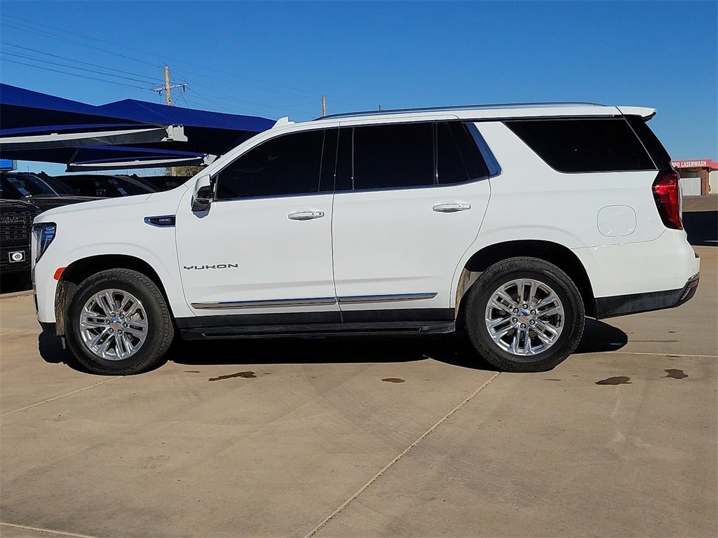 Recent Arrival! This 2024 GMC Yukon SLT EcoTec3 5.3L V8 10-Speed Automatic with Overdrive 4WD in Summit White comes with the following features: 4WD License Plate Front Mounting Package, Preferred Equipment Group 4SA (12-Way Power Seat Adjusters, 2 Presets For Power Driver Seat, Bose 9-Speaker Stereo Audio System Feature, Bright Chrome Bodyside Moldings, Bright Front & Rear Door Sill Plates, Chrome Door Handles w/Body-Color Strip, Hands-Free Power Programmable Rear Liftgate, Heated Driver & Front Passenger Seats, Inside Rear-View Auto-Dimming Mirror, Perforated Heated & Ventilated Dr & Frt Pass Seats, Safety Alert Seat, Universal Home Remote, and Wireless Charging), SLT Luxury Package (2 Presets For Outside Rearview Mirrors, 3rd Row 60/40 Power-Folding Split-Bench Seat, Adaptive Cruise Control, Enhanced Automatic Emergency Braking, HD Surround Vision, Heated 2nd Row Outboard Position Seats, Heated Steering Wheel, Outside Heated Power-Adjustable Mirrors, Power Release 2nd Row 60/40 Split-Folding Bench Seat, Power Tilt & Telescopic Steering Column, and Rear Pedestrian Alert), 4WD, 3.23 Rear Axle Ratio, 3rd row seats: split-bench, 4-Wheel Disc Brakes, 9 Speakers, ABS brakes, Air Conditioning, Alloy wheels, AM/FM radio: SiriusXM with 360L, AM/FM Stereo, Apple CarPlay/Android Auto, Auto High-beam Headlights, Auto-dimming Rear-View mirror, Automatic Emergency Braking, Automatic temperature control, Bodyside moldings, Brake assist, Bumpers: body-color, Compass, Delay-off headlights, Driver door bin, Driver vanity mirror, Dual front impact airbags, Dual front side impact airbags, Electronic Stability Control, Emergency communication system: OnStar and GMC connected services capable, Following Distance Indicator, Forward Collision Alert, Four wheel independent suspension, Front & Rear Park Assist, Front anti-roll bar, Front Bucket Seats, Front Center Armrest, Front dual zone A/C, Front fog lights, Front Pedestrian Braking, Front reading lights, Fully automatic headlights, Garage door transmitter, Heated door mirrors, Heated front seats, Illuminated entry, IntelliBeam Automatic High Beam On/Off, Lane Change Alert w/Side Blind Zone Alert, Lane Keep Assist w/Lane Departure Warning, Low tire pressure warning, Memory seat, Navigation System, Occupant sensing airbag, Outside temperature display, Overhead airbag, Overhead console, Panic alarm, Passenger door bin, Passenger vanity mirror, Perforated Leather-Appointed Seating, Power door mirrors, Power driver seat, Power Liftgate, Power passenger seat, Power steering, Power windows, Premium Smooth Ride Suspension, Rain sensing wipers, Rear air conditioning, Rear anti-roll bar, Rear Cross Traffic Alert, Rear reading lights, Rear seat center armrest, Rear window defroster, Rear window wiper, Remote keyless entry, Roof rack: rails only, Security system, SiriusXM w/360L, Speed control, Speed-sensing steering, Split folding rear seat, Spoiler, Steering wheel mounted audio controls, Tachometer, Telescoping steering wheel, Tilt steering wheel, Traction control, Trip computer, Variably intermittent wipers, Ventilated front seats, Voltmeter, and Wheels: 20 x 9 6-Spoke Polished Aluminum.Odometer is 8839 miles below market average!