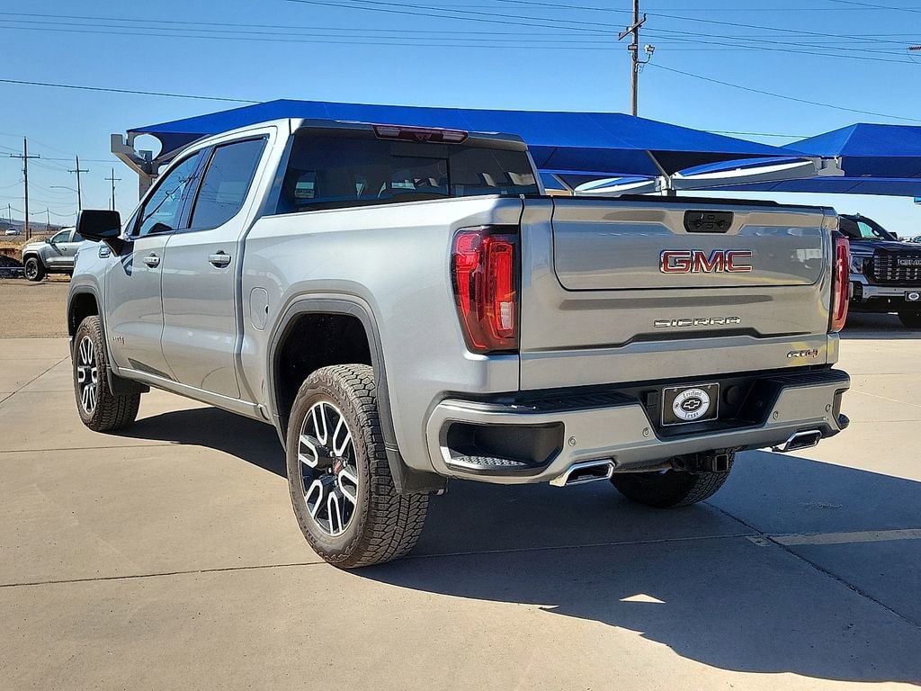 This 2025 GMC Sierra 1500 AT4 3.0L I6 10-Speed Automatic 4WD in Sterling Metallic comes with the following features: 10-Speed Automatic, 4WD, and Jet Black With Kalahari Accents Leather AT4 Preferred Package (Power Sliding Rear Window w/Rear Defogger and Universal Home Remote), AT4 Premium Package (Off-Road High Clearance Step (LPO)), Preferred Equipment Group 4SB (120-Volt Bed Mounted Power Outlet, 120-Volt Interior Power Outlet, 2 Charge/Data USB Ports Inside Center Console, 2 Type-C Charge-Only Rear USB Ports, 2 USB Ports, 220 Amp Alternator, Auto-Locking Rear Differential, Black Chrome Grille Insert Bars, Color-Keyed Carpeting Floor Covering, Deep-Tinted Glass, Electric Rear-Window Defogger, Floor-Mounted Center Console, Front Prem Floor Liners w/Removable Carpet Insert, Front Rain-Sensing Wipers, HD Surround Vision, Heated 2nd Row Outboard Seats, Heated Driver & Front Outboard Passenger Seating, Heavy-Duty Air Filter, Hill Descent Control, Hitch View, In-Vehicle Trailering System App, Integrated Trailer Brake Controller, Keyless Open & Start, LED Cargo Area Lighting, OnStar Services Capable, Perimeter Lighting, Power Door Locks, Power Front Passenger Windows w/Express Up/Down, Power Front Windows w/Driver Express Up/Down, Power Rake & Telescoping Steering Column, Power Rear Windows w/Express Down, Premium Bose 7-Speaker Sound System, Push Button Start, Rear Cross Traffic Braking, Rear Pedestrian Detection, Rear Prem Floor Liners w/Removable Carpet Insert, Rear Wheelhouse Liners, Red Recovery Hooks, Remote Vehicle Starter System, SiriusXM w/360L Trial Subscription, Spray-On Pickup Bedliner w/GMC Logo, Steering Wheel Audio Controls, Theft Deterrent System (Unauthorized Entry), Trailer Camera Provisions, Trailer Side Blind Zone Alert, Ultrasonic Front & Rear Park Assist, Ventilated Driver & Front Passenger Seats, Wi-Fi Hotspot Capable, and Wireless Charging), Technology Package (Bed View Camera, Multicolor 15 Diagonal Head-Up Display, and Rear Camera Mirror), Trailering Package (Hitch Guidance), 10-Speed Automatic, 4WD, Jet Black With Kalahari Accents Leather, 10-Way Power Driver Seat Adjuster w/Lumbar, 10-Way Power Passenger Seat Adjuster w/Lumbar, 3.23 Rear Axle Ratio, 4-Wheel Disc Brakes, 7 Speakers, ABS brakes, Air Conditioning, All-Weather Floor Liners w/AT4 Logo (LPO), Alloy wheels, AM/FM radio: SiriusXM with 360L, Apple CarPlay/Android Auto, Auto High-beam Headlights, Auto-dimming door mirrors, Auto-dimming Rear-View mirror, Automatic Emergency Braking, Automatic temperature control, Block heater, Brake assist, Buckle to Drive, Bumpers: body-color, Compass, Delay-off headlights, Driver door bin, Driver Memory, Driver vanity mirror, Dual front impact airbags, Dual front side impact airbags, Electronic Stability Control, Emergency communication system: OnStar, Engine Block Heater, Following Distance Indicator, Forward Collision Alert, Front anti-roll bar, Front Bucket Seats, Front Center Armrest, Front dual zone A/C, Front fog lights, Front License Plate Kit, Front Pedestrian Braking, Front reading lights, Front wheel independent suspension, Fully automatic headlights, Heated door mirrors, Heated front seats, Heated rear seats, Heated steering wheel, Illuminated entry, IntelliBeam Automatic High Beam On/Off, Lane Keep Assist w/Lane Departure Warning, Low tire pressure warning, Memory seat, Navigation System, Occupant sensing airbag, Off-Road Suspension, Outside temperature display, Overhead airbag, Overhead console, Panic alarm, Passenger door bin, Passenger vanity mirror, Perforated Front Leather Seat Trim, Power door mirrors, Power driver seat, Power passenger seat, Power steering, Power Sunroof, Power windows, Radio data system, Radio: Premium GMC Infotainment Audio System, Rain sensing wipers, Rear reading lights, Rear seat center armrest, Rear step bumper, Rear window defroster, Remote keyless entry, Safety Alert Seat, Security system, Speed control, Speed-sensing s