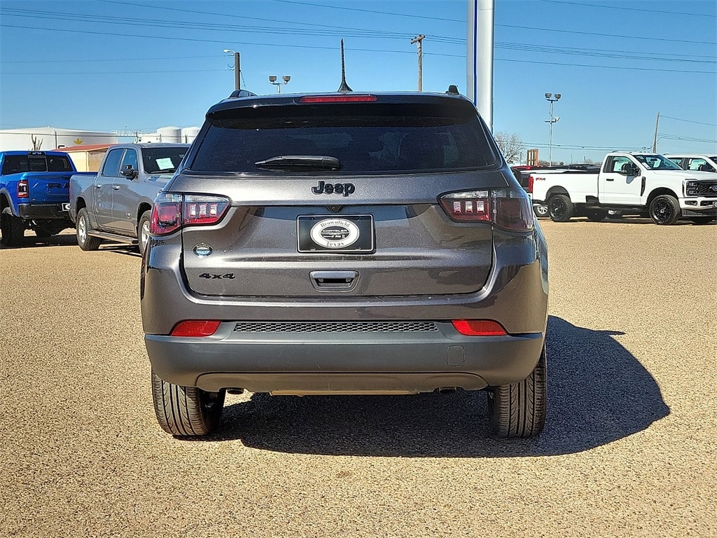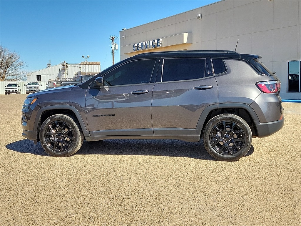 This 2024 Jeep Compass Latitude 2.0L I4 DOHC 8-Speed Automatic 4WD in Gray comes with the following features: 4WD Altitude Special Edition (Black Day Light Opening Moldings, Black Roof, Gloss Black Surround/Neutral Gray Rings, Light Tungsten Interior Accent Stitching, Neutral Gray Exterior Badging, Piano Black Interior Accents, Sliding Sun Visors w/Illuminated Mirrors, and Wheels: 18" x 7" Gloss Black Painted Aluminum), 4WD, 17" x 7" Aluminum Wheels, 3.73 Final Drive Ratio, 4-Wheel Disc Brakes, 6 Speakers, ABS brakes, Air Conditioning, Alloy wheels, AM/FM radio: SiriusXM, Auto High-beam Headlights, Brake assist, Bumpers: body-color, Compass, Delay-off headlights, Driver door bin, Driver vanity mirror, Dual front impact airbags, Dual front side impact airbags, Electronic Stability Control, Emergency communication system: Jeep Connect, Four wheel independent suspension, Front anti-roll bar, Front Bucket Seats, Front Center Armrest w/Storage, Front fog lights, Front reading lights, Fully automatic headlights, Heated door mirrors, Illuminated entry, Knee airbag, Leather Shift Knob, Leather steering wheel, Low tire pressure warning, Occupant sensing airbag, Outside temperature display, Overhead airbag, Overhead console, Panic alarm, ParkView Rear Back-Up Camera, Passenger door bin, Passenger vanity mirror, Power door mirrors, Power steering, Power windows, Premium Cloth/Vinyl Bucket Seats, Radio: Uconnect 5 w/10.1" Display, Rear anti-roll bar, Rear seat center armrest, Rear window defroster, Rear window wiper, Remote keyless entry, Security system, Speed control, Split folding rear seat, Spoiler, Steering wheel mounted audio controls, Tachometer, Telescoping steering wheel, Tilt steering wheel, Traction control, Trip computer, and Variably intermittent wipers.