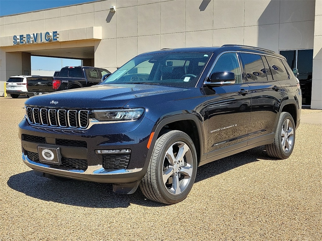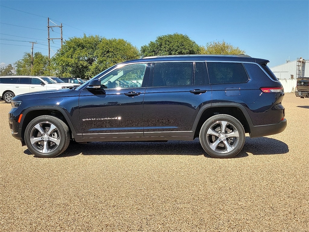 This 2024 Jeep Grand Cherokee L Limited 3.6L V6 24V VVT 8-Speed Automatic 4WD in Midnight Sky comes with the following features: Luxury Tech Group II (2nd Row Manual Window Shades, Auto-Dimming Exterior Driver Mirror, Capri Leatherette w/Axis II Seats, Integrated Off-Road Camera, Intersection Collision Assist System, Memory Steering Column, ParkSense Front/Rear Park Assist w/Stop, Passive Entry - Front/Rear Doors, Liftgate, Power Tilt/Telescope Steering Column, Rain Sensitive Windshield Wipers, Rear Back Up Camera Washer, Rearview Autodim Digital Display Mirror, Surround View Camera System, Ventilated Front Seats, and Wireless Charging Pad), Quick Order Package 23E, 3.45 Rear Axle Ratio, 3rd row seats: split-bench, 4-Wheel Disc Brakes, 6 Speakers, ABS brakes, Active Noise Control System, Air Conditioning, Alloy wheels, AM/FM radio: SiriusXM with 360L, Anti-whiplash front head restraints, Audio memory, Auto High-beam Headlights, Automatic temperature control, Brake assist, Bumpers: body-color, Capri Leatherette Seats, Compass, Delay-off headlights, Driver door bin, Driver vanity mirror, Dual front impact airbags, Dual front side impact airbags, Electronic Stability Control, Emergency communication system, Four wheel independent suspension, Front anti-roll bar, Front Bucket Seats, Front Center Armrest w/Storage, Front dual zone A/C, Front fog lights, Front License Plate Bracket, Front reading lights, Fully automatic headlights, Garage door transmitter, Heated door mirrors, Heated front seats, Heated rear seats, Heated steering wheel, Illuminated entry, Knee airbag, Low tire pressure warning, Manual Fold Seatbacks, Memory seat, Navigation System, Normal Duty Suspension, Occupant sensing airbag, Outside temperature display, Overhead airbag, Overhead console, Panic alarm, ParkView Rear Back-Up Camera, Passenger door bin, Passenger vanity mirror, Power door mirrors, Power driver seat, Power Liftgate, Power passenger seat, Power steering, Power windows, Radio data system, Radio: Uconnect 5 Nav w/10.1" Display, Rear air conditioning, Rear anti-roll bar, Rear reading lights, Rear window defroster, Rear window wiper, Reclining 3rd row seat, Remote keyless entry, Security system, Speed control, Speed-Sensitive Wipers, Split folding rear seat, Spoiler, Steering wheel mounted audio controls, Tachometer, Telescoping steering wheel, Tilt steering wheel, Traction control, Trip computer, Turn signal indicator mirrors, Variably intermittent wipers, Voltmeter, Wheels: 18" x 8.0" Polished/Painted Aluminum, and Wheels: 20" x 8.5" Machined/Painted Alum (DISC)