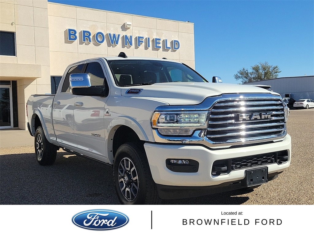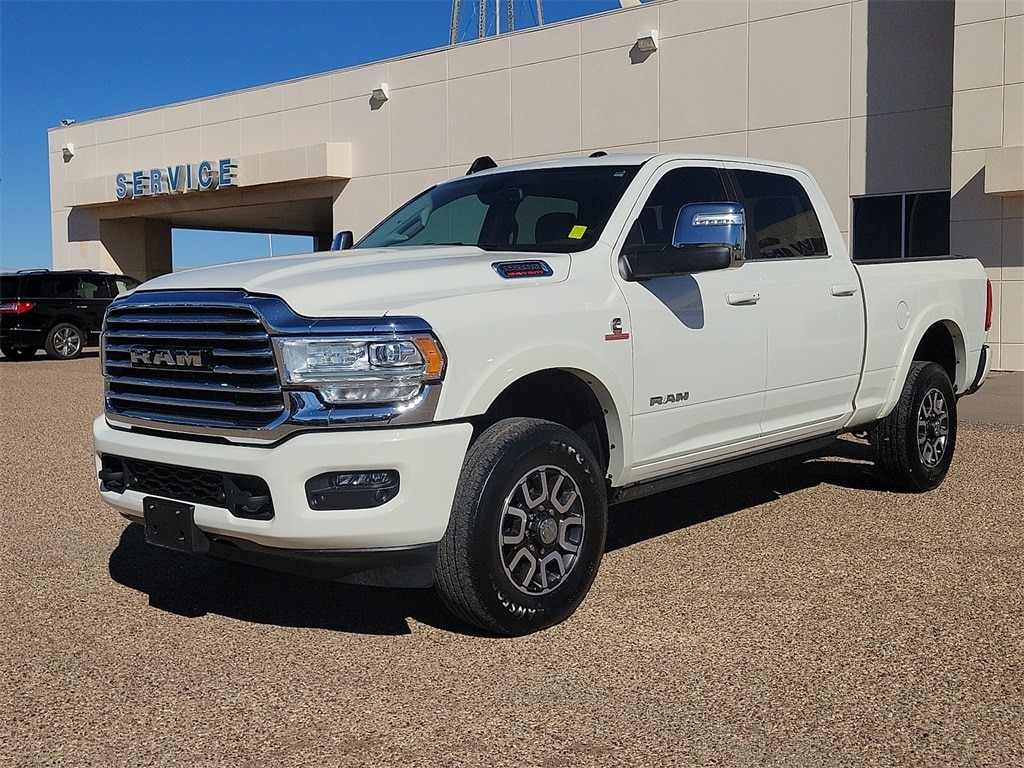 Recent Arrival! This 2024 Ram 2500 Longhorn Cummins 6.7L I6 Turbodiesel 6-Speed Automatic 4WD in Pearl White comes with the following features: Longhorn Level 1 Equipment Group (12" Touchscreen Display, 17 Speaker harman/kardon Premium Sound, 4G LTE Wi-Fi Hot Spot, Alexa Built-In, Apple CarPlay, Blind Spot & Cross Path Detection, Connected Travel & Traffic Services, Connectivity - US/Canada, Disassociated Touchscreen Display, For Details, Visit DriveUconnect.com, For More Info, Call 800-643-2112, Global Telematics Box Module (TBM), Google Android Auto, GPS Antenna Input, GPS Navigation, HD Radio, Integrated Voice Command w/Bluetooth, LED Bed Lighting, MOPAR Spray In Bedliner, Off-Road Information Pages, Power Deployable Running Boards, Radio: Uconnect 5 Nav w/12.0" Display, Ramcharger Wireless Charging Pad, Selectable Tire Fill Alert, SiriusXM Radio Service, SiriusXM w/360L, and Trailer Tow Pages), Quick Order Package 2HK Longhorn, 10 Speakers, 115V Auxiliary Rear Power Outlet, 2 Way Rear Headrest Seat, 220 Amp Alternator, 3.73 Axle Ratio, 4 Way Front Headrests, 4-Wheel Disc Brakes, ABS brakes, Active Noise Control System, Adjustable pedals, Air Conditioning, Alloy wheels, AM/FM radio: SiriusXM with 360L, Anti-Spin Differential Rear Axle, Apple CarPlay/Android Auto, Audio memory, Auto High-beam Headlights, Auto-dimming door mirrors, Auto-dimming Rear-View mirror, Automatic temperature control, Brake assist, Bucket Seats, Bumpers: body-color, Center Hub, Compass, Delay-off headlights, Delete Spray In Bedliner, Driver door bin, Driver vanity mirror, Dual front impact airbags, Dual front side impact airbags, Electronic Stability Control, Electronically Controlled Throttle, Folding Flat Load Floor Storage, Front anti-roll bar, Front Bucket Seats, Front Center Armrest w/Storage, Front dual zone A/C, Front fog lights, Front License Plate Bracket, Front reading lights, Front Seat Back Map Pockets, Full Length Premium Upgraded Floor Console, Fully automatic headlights, Garage door transmitter, Genuine wood console insert, Genuine wood dashboard insert, Genuine wood door panel insert, Heated door mirrors, Heated Front Seats, Heated front seats, Heated rear seats, Heated Second Row Seats, Heated Steering Wheel, Heated steering wheel, High Back Seats, Illuminated entry, Leather steering wheel, Low tire pressure warning, Manufacturer's Statement of Origin, Memory seat, Navigation System, Occupant sensing airbag, Outside temperature display, Overhead airbag, Overhead console, Panic alarm, ParkView Rear Back-Up Camera, Passenger door bin, Passenger vanity mirror, Pedal memory, Power 2-Way Driver Lumbar Adjust, Power 2-Way Passenger Lumbar Adjust, Power Adjust 8-Way Driver Seat, Power Adjust 8-Way Front Passenger Seat, Power door mirrors, Power driver seat, Power passenger seat, Power steering, Power Sunroof, Power windows, Premium Filigree Leather Seats, Radio data system, Radio: Uconnect 5 Nav w/8.4" Display, Radio/Driver Seat/Mirrors/Pedals Memory, Rain sensing wipers, Rear 60/40 Folding Seat, Rear anti-roll bar, Rear reading lights, Rear seat center armrest, Rear step bumper, Rear window defroster, Remote keyless entry, Security system, Speed control, Split folding rear seat, Steering wheel mounted audio controls, Tachometer, Tilt steering wheel, Tip Start, Traction control, Trip computer, Turn signal indicator mirrors, Variably intermittent wipers, Vendor Painted Cargo Box, Vendor Painted Cargo Box Tracking, Ventilated Front Seats, Ventilated front seats, Voltmeter, and Wheels: 18" x 8.0" Diamond Cut Face AluminuM.