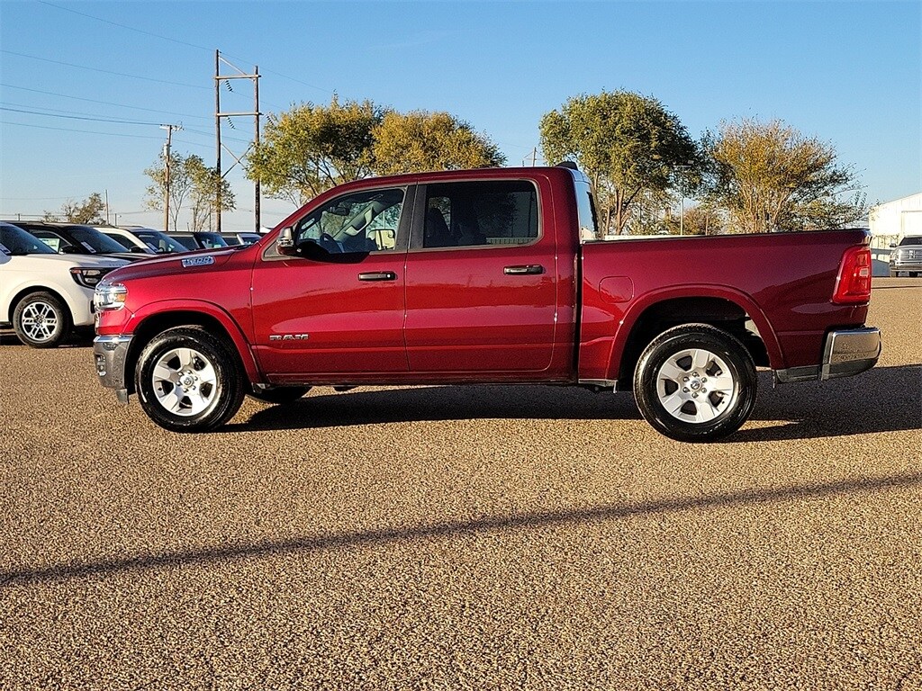 This 2025 Ram 1500 Big Horn/Lone Star 3.6L V6 24V VVT 8-Speed Automatic RWD in Delmonico Red Pearlcoat comes with the following features: Big Horn Level 1 Equipment Group (115V Auxiliary Power Outlet, 2nd Row In Floor Storage Bins, 400W Inverter, Auto Power-Folding Mirrors, Auto-Dimming Exterior Driver Mirror, Auto-Dimming Rear-View Mirror, Black Exterior Mirrors, Black Premium Power Mirrors, Convex Wide-Angle Exterior Mirror Insert, Exterior Mirrors Courtesy Lamps, Exterior Mirrors w/Heating Element, Exterior Mirrors w/Supplemental Signals, Glove Box Lamp, Heated Front Seats, Heated Steering Wheel, Leather Wrapped Steering Wheel, Power 2-Way Driver Lumbar Adjust, Power Adjust 8-Way Driver Seat, Power Adjustable Pedals, Rear Power Sliding Window, Rear Window Defroster, Steering Wheel Mounted Audio Controls, Sun Visors w/Illuminated Vanity Mirrors, and Universal Garage Door Opener), Quick Order Package 23R Lone Star (Regional) (Lone Star Badge), 3 Rear Seat Head Restraints, 3.21 Rear Axle Ratio, 4 Way Front Headrests, 4-Wheel Disc Brakes, 4G LTE Wi-Fi Hot Spot, 6 Speakers, ABS brakes, Air Conditioning, Alloy wheels, AM/FM radio, Apple CarPlay, Apple CarPlay/Android Auto, Auto High-beam Headlights, Brake assist, Bumpers: chrome, Cloth Bench Seat, Compass, Connectivity - US/Canada, Delay-off headlights, Driver door bin, Dual front impact airbags, Dual front side impact airbags, Electronic Stability Control, Exterior Parking Camera Rear, Front anti-roll bar, Front Center Armrest w/Storage, Front fog lights, Front License Plate Bracket, Front reading lights, Front Seat Back Map Pockets, Front wheel independent suspension, Fully automatic headlights, Google Android Auto, GPS Antenna Input, Heated door mirrors, Illuminated entry, Low tire pressure warning, Manual Adjust 4-Way Front Passenger Seat, Manual Folding Exterior Mirrors, Manufacturer's Statement of Origin, MOPAR Front & Rear Rubber Floor Mats, Occupant sensing airbag, Outside temperature display, Overhead airbag, Overhead console, Panic alarm, Passenger door bin, Passenger vanity mirror, Power door mirrors, Power steering, Power windows, Radio data system, Radio: Uconnect 5 W w/8.4" Display, RAM Grille Badge - Chrome, Rear 60/40 Folding Seat, Rear anti-roll bar, Rear Center Armrest, Rear seat center armrest, Rear step bumper, Remote keyless entry, Speed control, Split folding rear seat, Supplier Part Tracking (J-1), Tachometer, Telescoping steering wheel, Tilt steering wheel, Traction control, Trip computer, USB Host Flip, Variably intermittent wipers, Voltmeter, and Wheels: 18" x 8" Cast-Aluminum Painted.