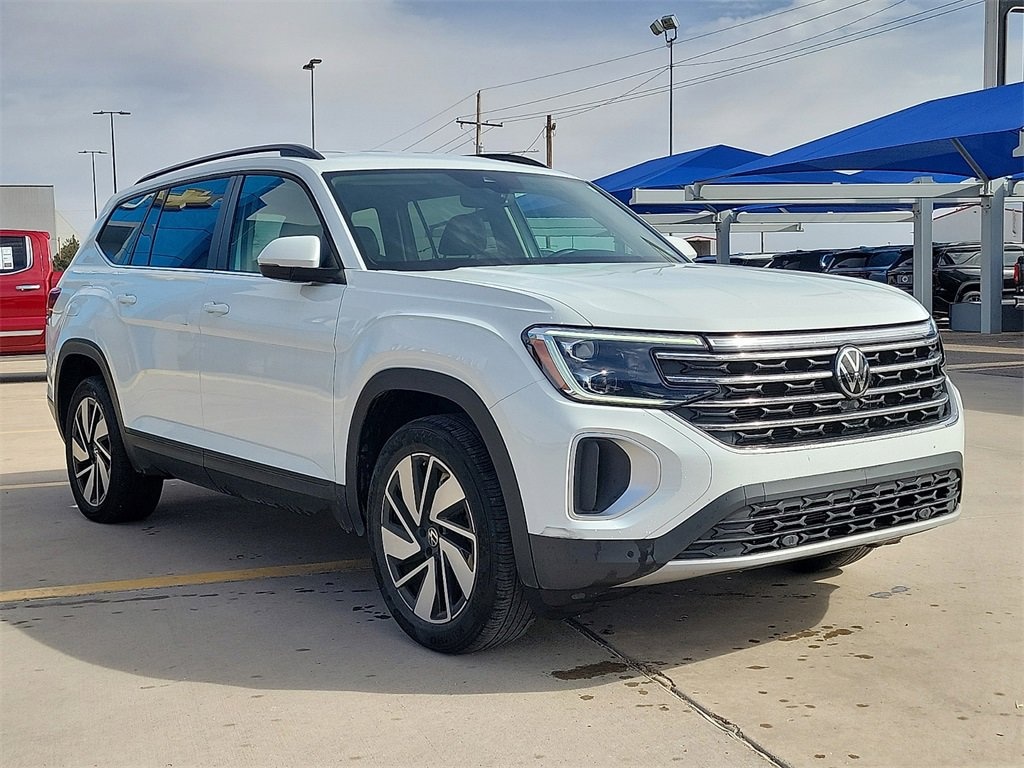 Recent Arrival! This 2025 Volkswagen Atlas 2.0T SE w/Technology 2.0L TSI 8-Speed Automatic FWD in Silver comes with the following features: 20 2-tone machined alloy wheels, 3rd row seats: split-bench, 4-Wheel Disc Brakes, 6 Speakers, ABS brakes, Air Conditioning, Alloy wheels, AM/FM radio: SiriusXM with 360L, Auto High-beam Headlights, Auto-dimming Rear-View mirror, Automatic temperature control, Brake assist, Bumpers: body-color, Compass, Delay-off headlights, Driver door bin, Driver vanity mirror, Dual front impact airbags, Dual front side impact airbags, Electronic Stability Control, Emergency communication system: VW Car-Net Safe & Secure 5-year, Exterior Parking Camera Rear, Four wheel independent suspension, four-wheel independent suspension, Front anti-roll bar, Front Bucket Seats, Front Center Armrest, Front dual zone A/C, Front fog lights, Front reading lights, Fully automatic headlights, heated and Actively ventilated front bucket seats, Heated door mirrors, Heated front seats, Heated steering wheel, Illuminated entry, Low tire pressure warning, MIB3 composition media radio, Occupant sensing airbag, Outside temperature display, Overhead airbag, Overhead console, Panic alarm, Passenger door bin, Passenger vanity mirror, perforated V-Tex leatherette seating surfaces, Power door mirrors, Power driver seat, Power Liftgate, Power steering, Power windows, Radio data system, Rain sensing wipers, Rear air conditioning, Rear anti-roll bar, Rear reading lights, Rear seat center armrest, Rear window defroster, Rear window wiper, Remote keyless entry, Security system, Speed control, Speed-sensing steering, Split folding rear seat, Spoiler, Steering wheel mounted audio controls, Tachometer, Telescoping steering wheel, Tilt steering wheel, Traction control, Trip computer, Turn signal indicator mirrors, Variably intermittent wipers, and Ventilated front seats.